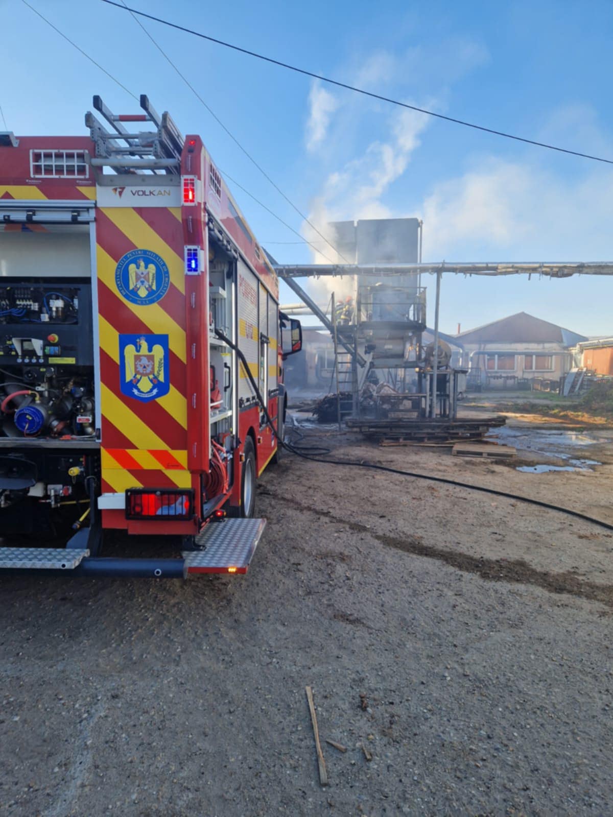 Două autospeciale de stingere cu apă și spumă au fost trimise de urgență la fața locului, unde incendiul se manifesta la uscătoria de lemne și în interiorul tubulaturilor de exhaustare a rumegușului.
