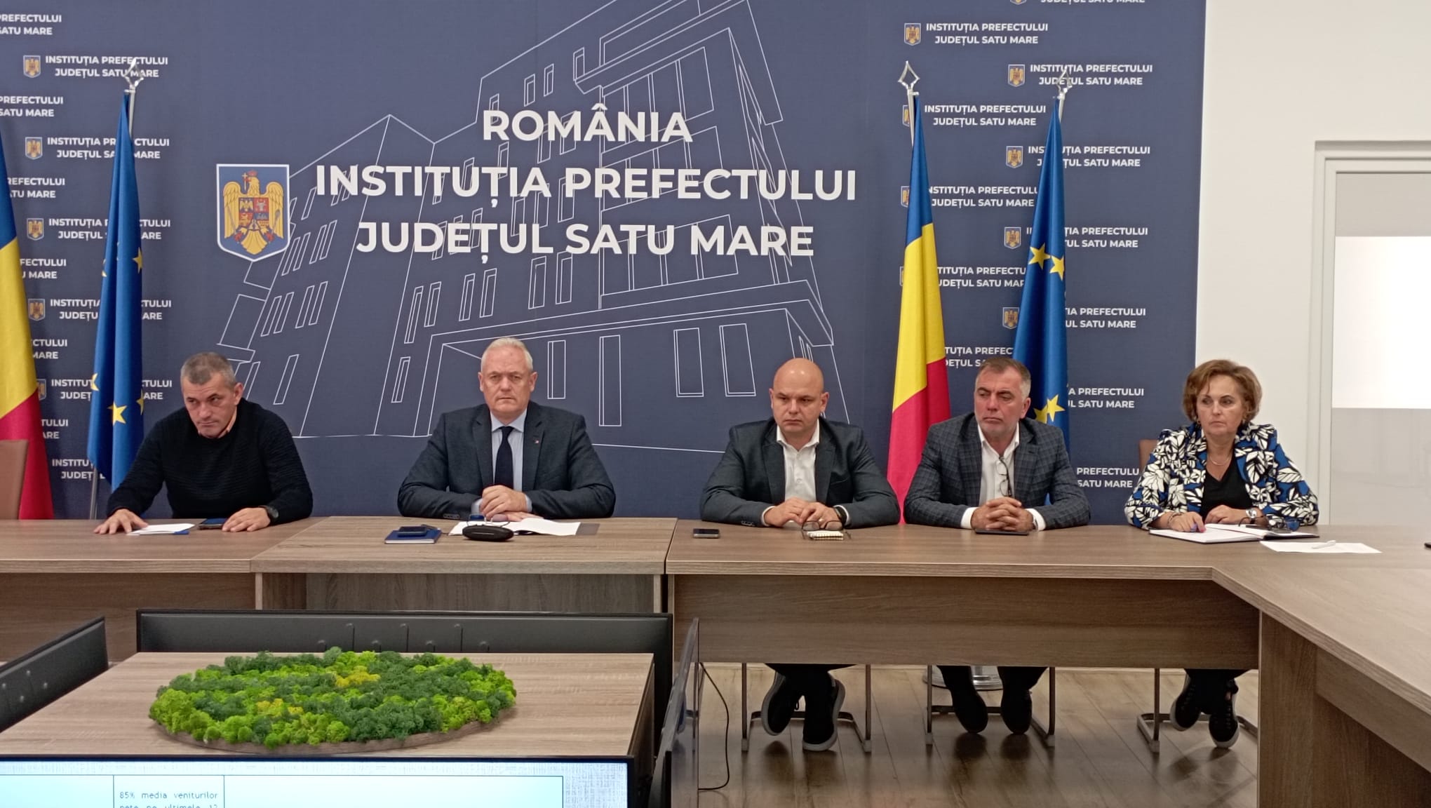 Prefectul Ioan Tibil alături de subprefecții Altfatter Tamás și Gheorghe Balazs , de directorul Cancelariei, Radu Iancu a participat astăzi, 29.10.2024, la ședința Colegiului Prefectural, pe ordinea de zi fiind prezentată activitatea Agenției Județene pentru Plăți și Inspecție Socială Satu Mare.