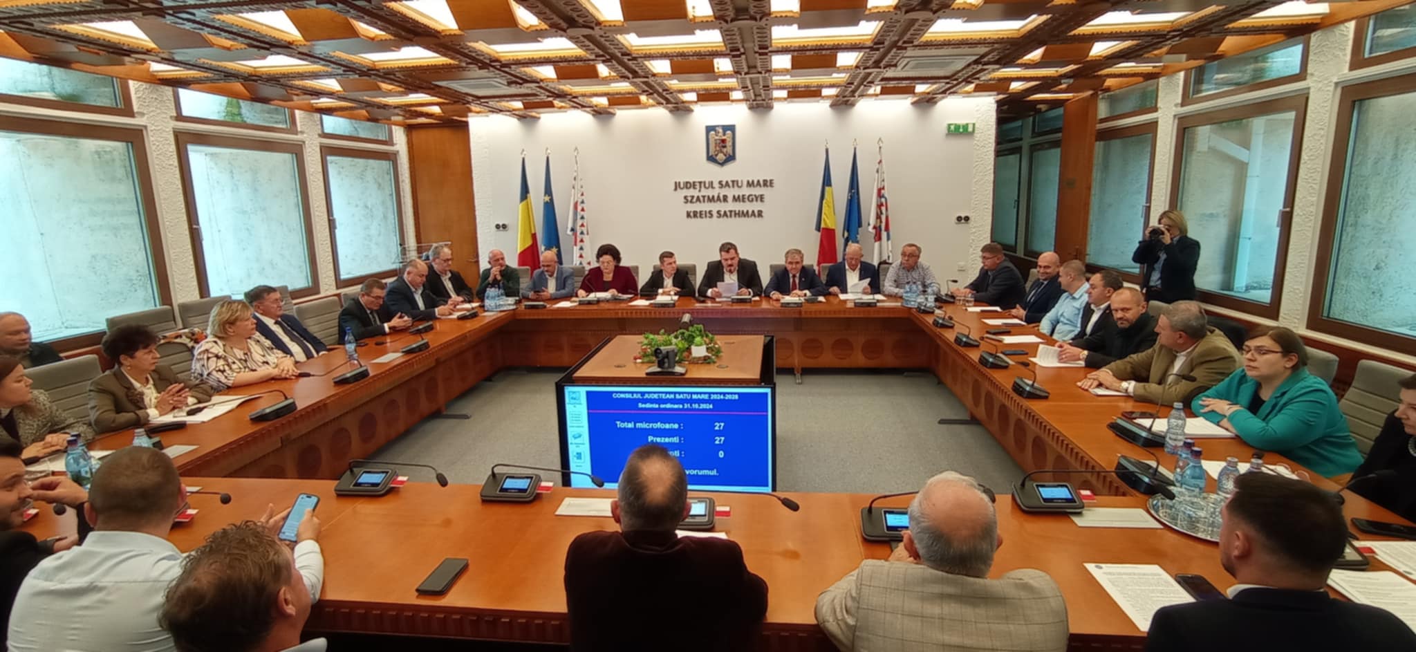 Încă de la începutul ședinței de joi, încă cinci consilieri județeni au depus jurământul oficial, astfel Consiliul Județean Satu Mare a devenit complet odată cu numirea consilierilor Căcău Iulian (PNL), Godzsa Zsolt-Tiberiu (UDMR), Marghitaș Mircea-Gabriel (PNL), Merker Andrea (UDMR) și Stănean Sorin-Vasile (PSD).