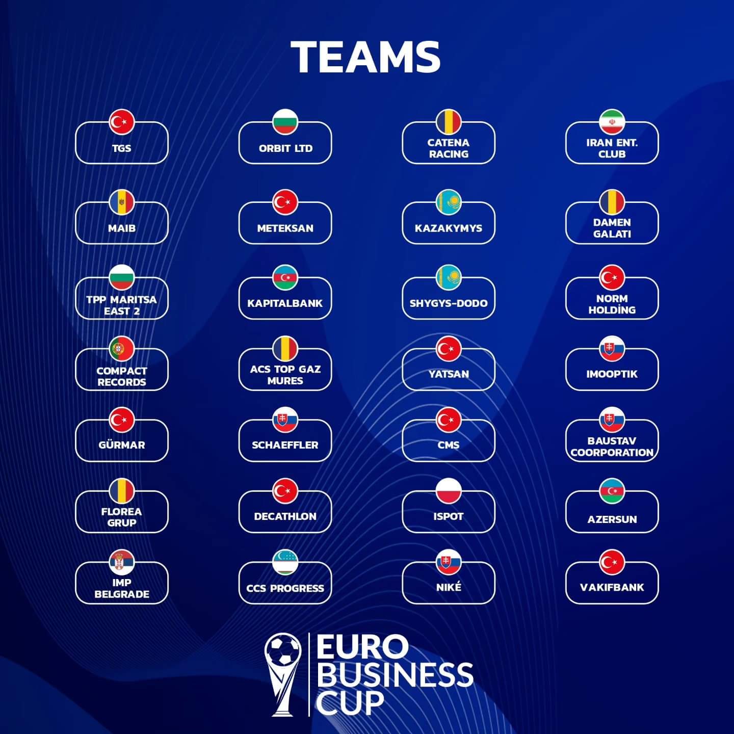Majoritatea companiilor prezente la turneu au jucători din naționalele de minifotbal a Slovaciei, Kazahstanului, Azerbaidjanului...Felicitări Gabi Cadar&Bogdan Faur și mult succes.