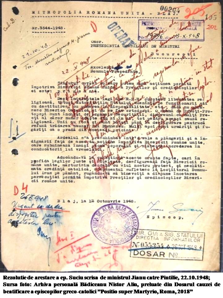 ”Via Crucis a episcopilor Greco-Catolici a început cu arestarea lor, care a fost făcută în perioada 27-29 octombrie 1948, în stilul stalinist consacrat „în modul cel mai discret posibil”, „procedând cu mult tact” (NISTOR ALIN BĂDICEANU - Antreprenor social; Președinte al Asociației ”Nistor Bădiceanu”; Președinte ”Asociația Generală a Românilor Uniți” Eparhia Oradea)
