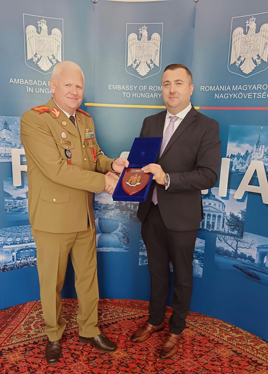 În aceeași zi, în continuarea programului, la sediul Consulatului General al României la Seghedin a avut loc o masa de lucru, cu dezbateri, la care au participat toţi cei invitaţi, în cadrul căreia s-au prezentat pe lângă bucate tradiționale românești, “Pita de Pecica” și s-au degustat vinuri din Podgoria Mocrea-Ineu, Arad. Cu această ocazie, prof. Gheorghe Petruşan, fost şef al Catedrei de Limba și Literatura Română a Facultății de Pedagogie “Juhász Gyula”, de la Universitatea din Seghedin, a susţinut o prelegere despre definirea noţiunii de identitate naţională a românilor din Ungaria. De asemenea, Florin Trandafir Vasiloni, consul general al României la Gyula, a participat, la invitaţia Ambasadei Românei la Budapesta, la un ceremonial militar româno-maghiar desăşurat în Cimitirul Central din Budapesta. Cu această ocazie, au fost depuse coroane la Monumentul Eroilor Români, ridicat în memoria ostaşilor români care şi-au pierdut viaţă pe teritoriul Ungariei, în timpul celui de-al doilea război mondial. Ceremonialul s-a desfăşurat în prezenţa unor membri ai corpului diplomatic acreditat la Budapesta, a reprezentanţilor Ministerului Apărării din România şi din Ungaria, precum şi a unor ataşaţi militari acreditaţi în capitală ungară. Ceremonia a fost deschisă de către Ambasadorul României în Ungaria, Gabriel Șopandă. Au participat Daniel Banu, consul general al României la Gyula, alți diplomați români, reprezentanți ai Ministerului ungar al Apărăriicol. Ionuț Popa, ataşatul apărării, militar şi aero; militari români dislocați în Ungaria la Heavy Airlift Wing (HAW), Baza Aeriană Pápa, NATO Force Integration Unit (NFIU) Hungary, Székesfehérvár, NATO Centre of Excellence for Military Medicine.