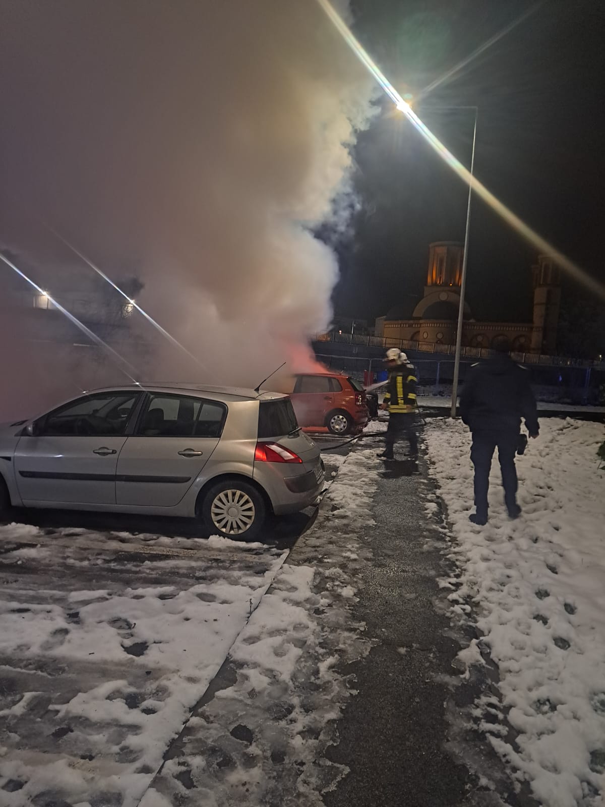 Ajunse la locul intervenției, pompierii au constatat că incendiul se manifesta generalizat și violent la un autoturism cu propagare la un alt autoturism parcat în imediata apropiere.