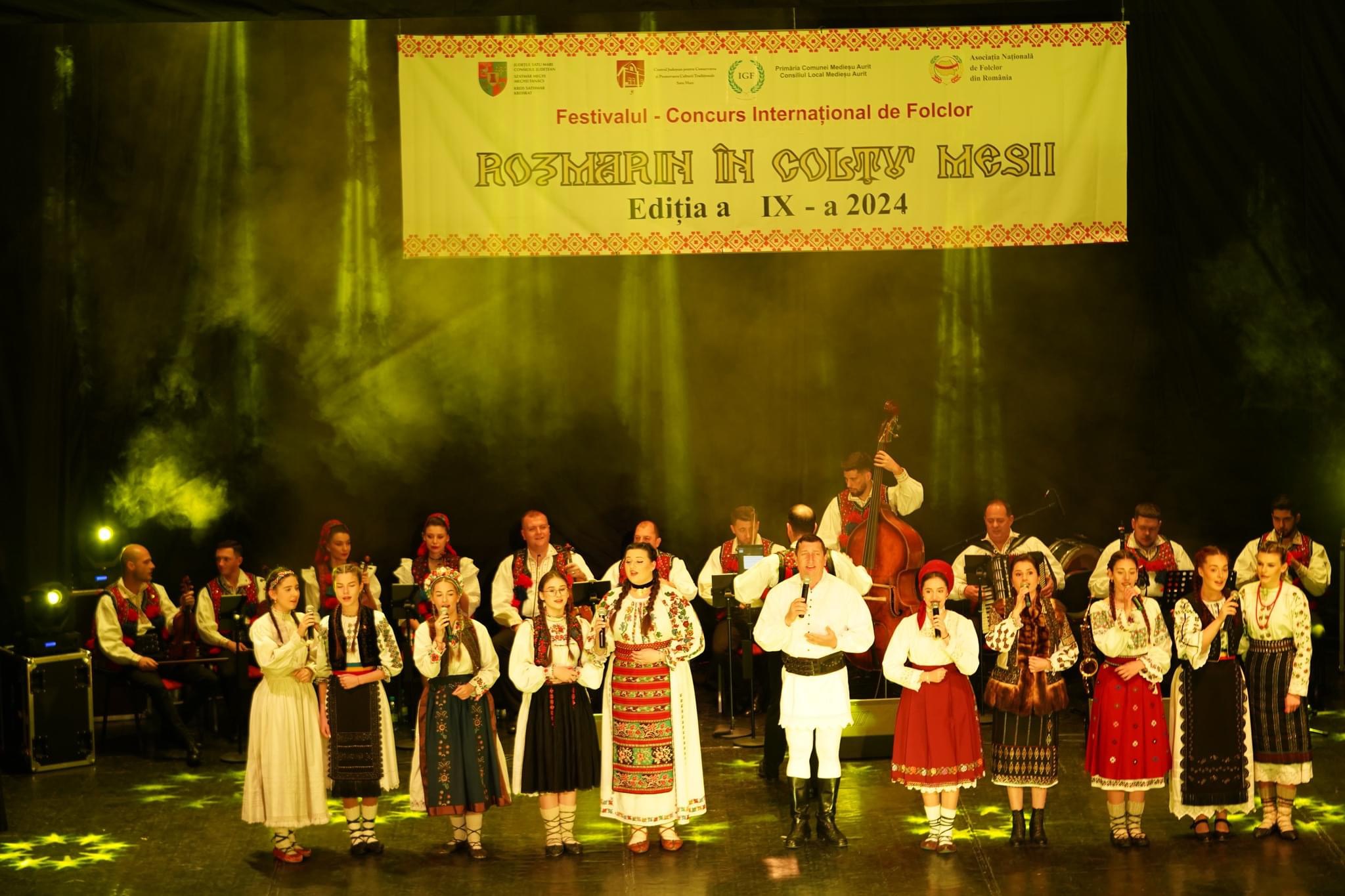 Centrul Judeţean pentru Conservarea şi Promovarea Culturii Tradiţionale Satu Mare, Primăria și Consiliul Local Medieșu Aurit, cu sprijinul Consiliului Judeţean Satu Mare, în parteneriat cu Asociația Națională de Folclor din România și Uniunea Mondială de Folclor (I.G.F.), a organizat sâmbătă 17 noiembrie 2024, în Sala Mare a Casei de Cultură a Sindicatelor Satu Mare, concursul de interpretare vocală, spectacolul artistic și Gala Laureaților în cadrul celei de-a IX- a ediţie a Festivalului Concurs Internațional de Folclor ,,Rozmarin în colţu’ mesii".