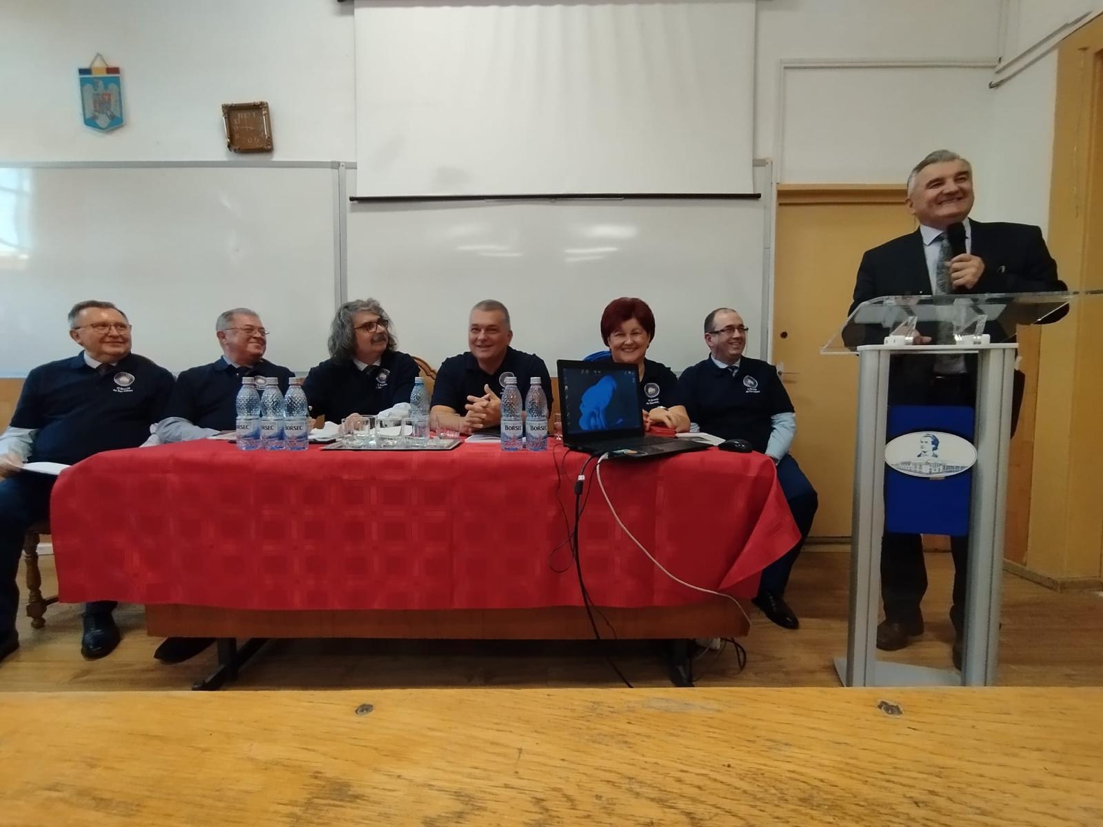 ,,Colegiul Național ,,Mihai Eminescu” din Satu Mare este gazda unui eveniment deosebit de lansare a unui volum interesant. Colegiul nostru rămâne în continuare, un templu al studiului, al experiențelor științifice, didactice și culturale, un spațiu al învățării pentru profesori și elevi, în egală măsură. Trecut și prezent, viziune obiectivă, lucidă, sensibilitate și critică în spații estetice și rafinate, vor defini această lucrare de excepție, scrisă de colegii noștri de matematică. Marele poet modernist, Ion Barbu, pe numele său real, Dan Barbilian, poet și matematician deopotrivă, consideră că ,,matematica pune în joc puteri sufletești, nu mult diferite de cele solicitate de poezie și artă”. Domeniu fascinant, greu de definit, cu mare complexitate interioară, cu influențe trimise subtil prin care lumea întreagă a matematicii rămâne disciplină esențială, prin care definim și construim spirala învățării. Constantin Noica consideră că ,,A fost întotdeauna puțină poezie, ceva lirism, altceva decât simpla știință sub rubrica geometrie.” Matematica este un subiect de descifrare prin exerciții interesante, prin probleme inedite, prin dialog, toate acestea lansate de prefesori dedicați către elevi studioși și pasionați de științe. Prin armonie și frumusețe, prin perfecțiune și rigoare, matematica este o poveste rațională de iubire, dublată de talentul pedagogic și sensibilitatea unor profesori dedicați, lecția de matematică devenind irevocabil, o metaforă a iubirii de frumos, de adevăr, de echilibru și ordine. Există oamenii care lasă o amprentă profundă în viețile nostre, un astfel de om este și profesorul Ovidiu T. Pop, care pe lângă activitatea de profesor de matematică, a avut și o prețioasă activitate publicistică. Dânsului i se datorează monografiile colegiului și vă mărturisesc sincer că, de când sunt directorul acestui Colegiu, m-a preocupat, pe lângă activitățile demonstrative, administrative și educative, alături de domnul profesor și colegii mei și de partea culturală a școlii noastre, astfel pornind de la dorința domnului Ovidiu Pop, am amenajat și inaugurat în anul 2022, muzeul eminescienilor sătmăreni. În 2021 am sfințit capela colegiul nostru, iar azi, capela muzeul și sălile care sunt amenajate la subsolul acestei clădiri, formează centrul cultural și spiritual Sfinții Arhangheli Mihail și Gavriil, patroni spirituali ai școlii nostre.” a declarat Natalia Boloș, directorul Colegiului Național ,,Mihai Eminescu”.