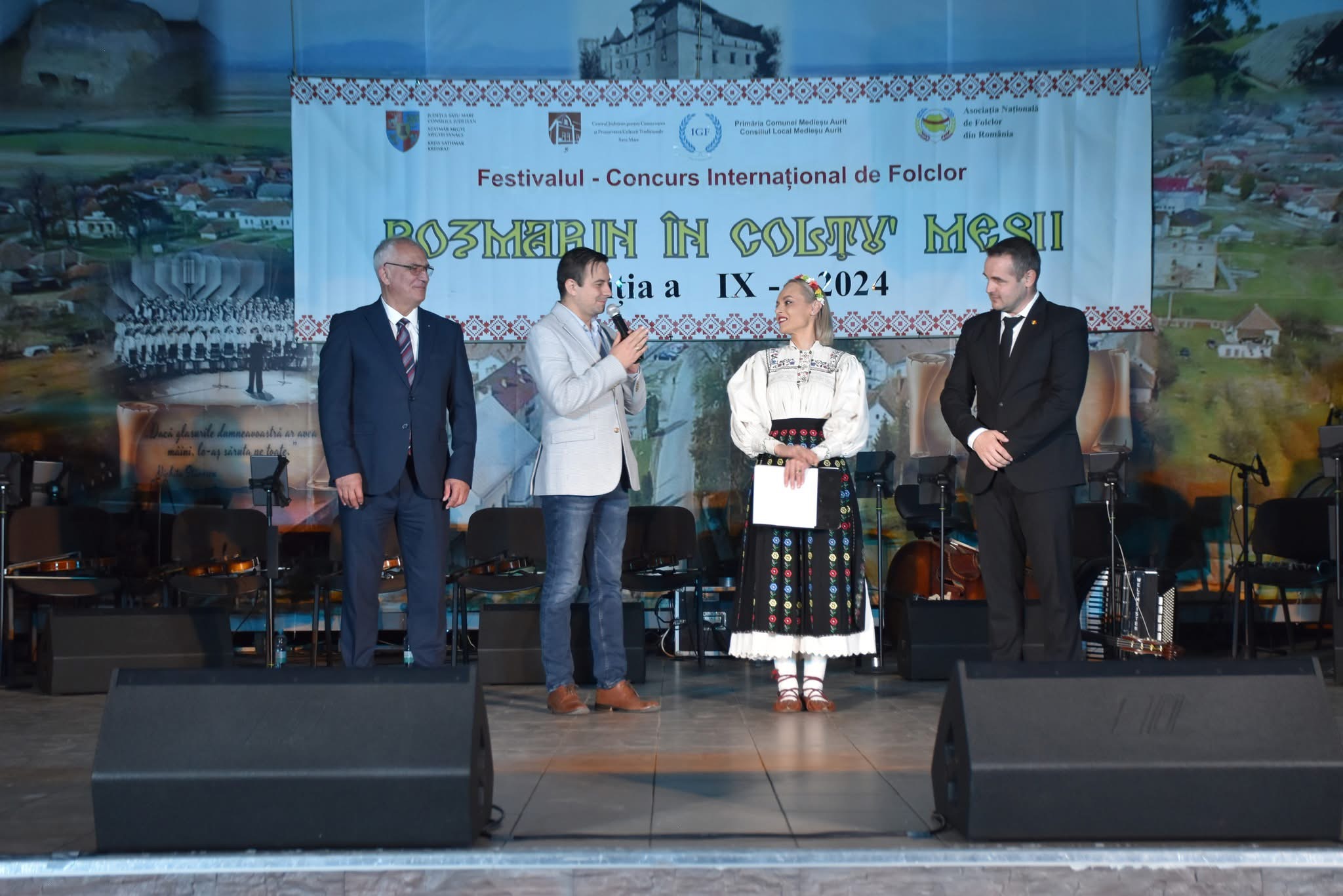 Centrul Judeţean pentru Conservarea şi Promovarea Culturii Tradiţionale Satu Mare, Primăria și Consiliul Local Medieșu Aurit, cu sprijinul Consiliului Judeţean Satu Mare, în parteneriat cu Asociația Națională de Folclor din România și Uniunea Mondială de Folclor (I.G.F.), a organizat duminică 17 noiembrie 2024, la Căminul Cultural din localitatea Medieșu Aurit, spectacolul de Gală a celei de-a IX- a ediţii a Festivalului Concurs Internațional de Folclor ,,Rozmarin în colţu’ mesii".