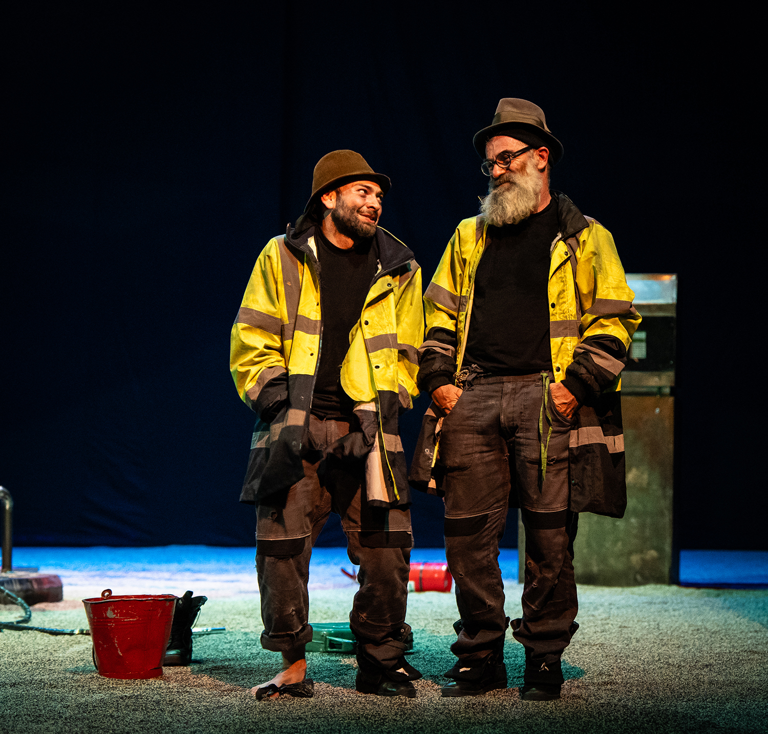 Duminică, 8 decembrie, tot de la ora 19, puteți vedea pe scena Teatrului de Nord montarea unui text celebru al secolului trecut: AȘTEPTÂNDU-L PE GODOT, de Samuel Beckett. Spectacolul ne invită să medităm asupra trecerii timpului prin fel de fel de situații absurde și comice. Doi prieteni, Estragon și Vladimir, așteaptă sosirea unui individ pe nume Godot. Pe măsură ce aflăm mai multe despre ei, relația lor dar și despre postura în care sunt puși, intrăm pe neașteptate într-o călătorie statică care ne poartă deopotrivă prin confuzie și revelație, reamintindu-ne, poate, de lucrurile care ne fac să fim oameni, cu bune și cu rele.
