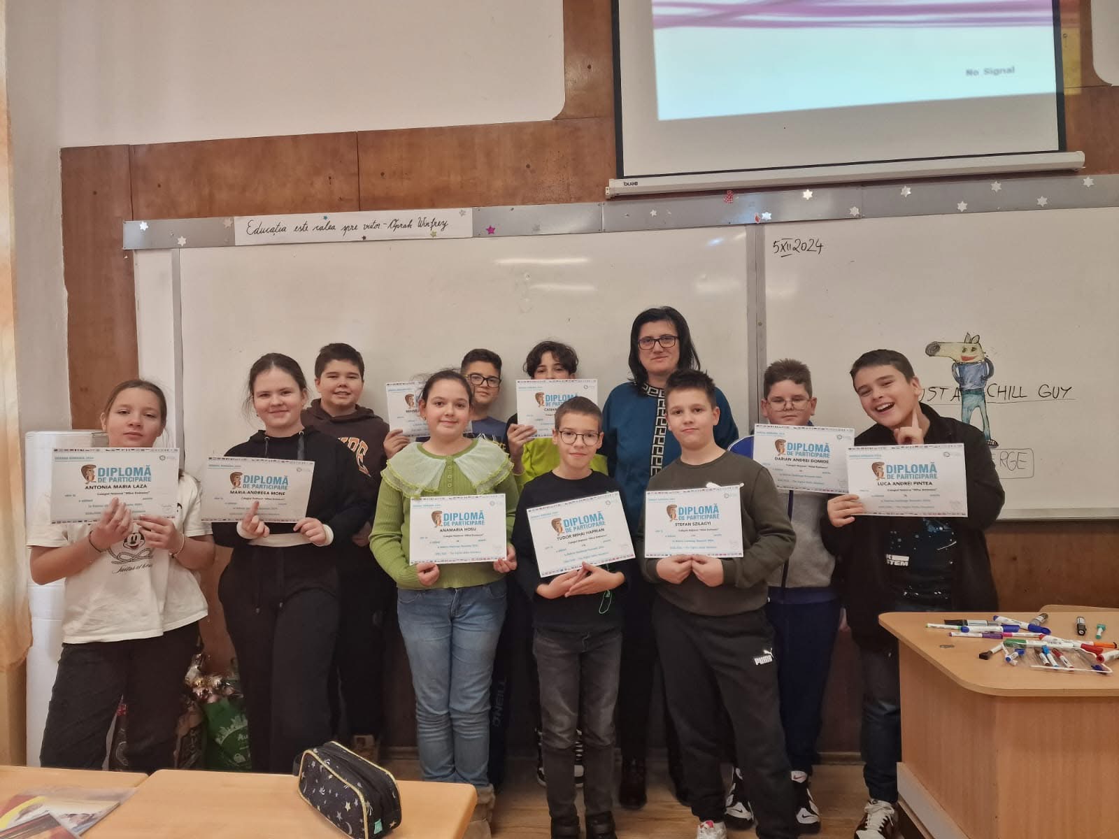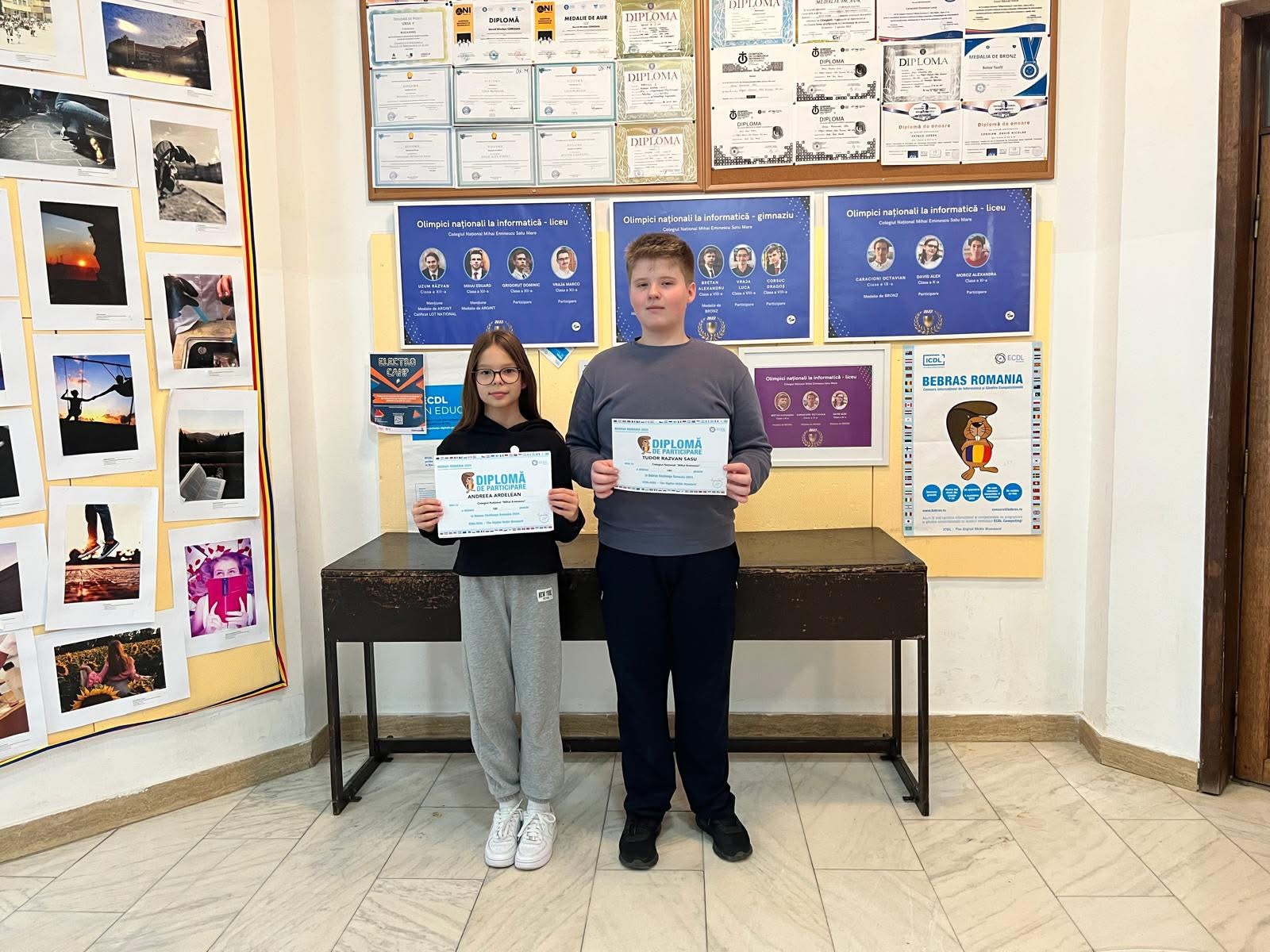 Ardelean Andrea și Tudor Sasu din clasa a VI-a, care au obținut punctaj maxim și au fost distinși cu diploma de merit SuperBebra!