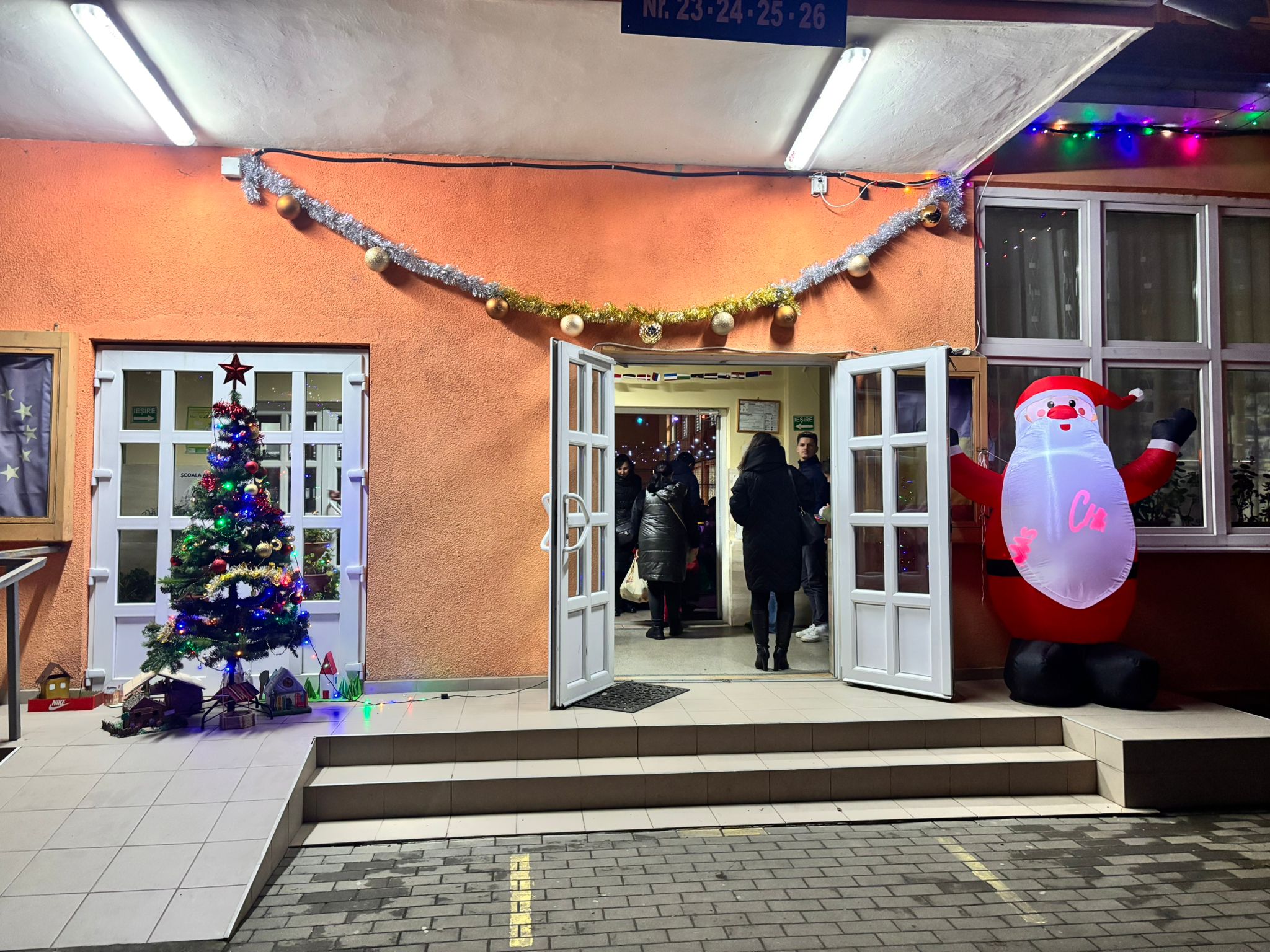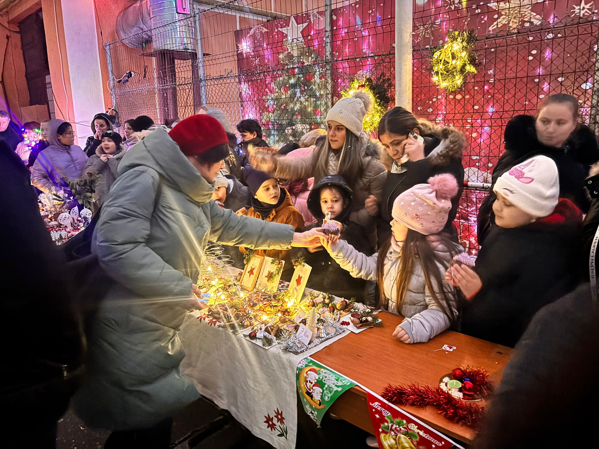 Școala Gimnazială „Mircea Eliade” din Satu Mare, pe 12 decembrie, începând cu ora 17:00, a fost gazda unui târg de Crăciun plin de culoare și emoție. Curtea școlii s-a transformat într-un veritabil tărâm de poveste, decorată cu luminițe și ornamente specifice sărbătorilor, atmosfera festivă fiind vizibilă încă de la intrare.