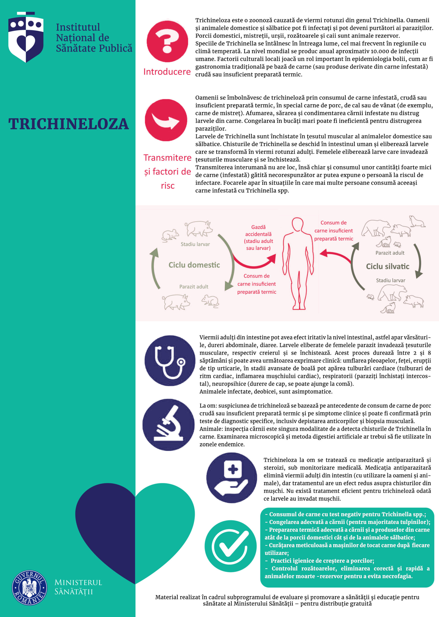 Medicii care emit suspiciunea de trichineloză vor raporta cazurile, conform legislației în vigoare.