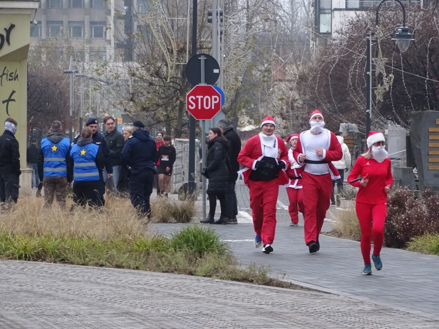Organizatorii au pus la bătaie costume de moș iar traseul a avut 2 km, pe străzile din centrul orașului. Cei mai curajoși au parcurs de două ori traseul.