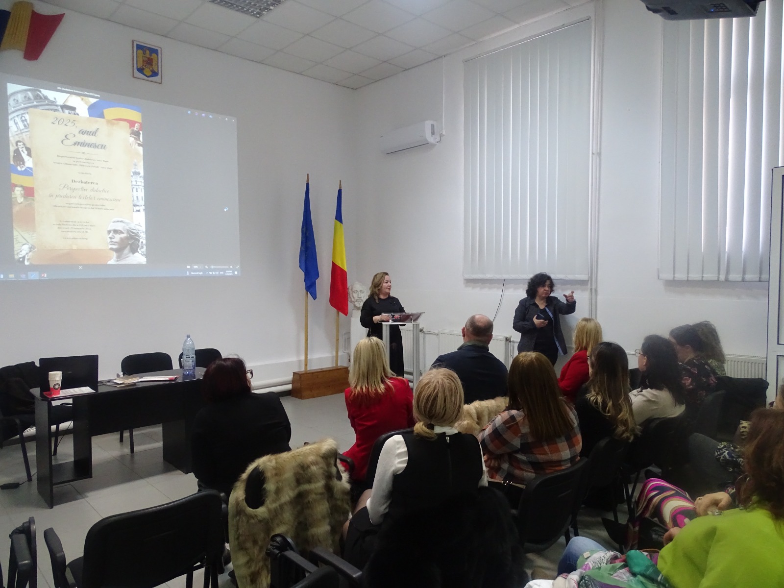 Prezentarea rezultatelor proiectului: Cu 32 de unități de învățământ participante, proiectul „Mihai Eminescu și identitatea noastră națională” a demonstrat că interesul tinerilor pentru opera poetului național rămâne puternic, fiind exprimat prin poezie, eseuri, caligrafie și arte plastice.