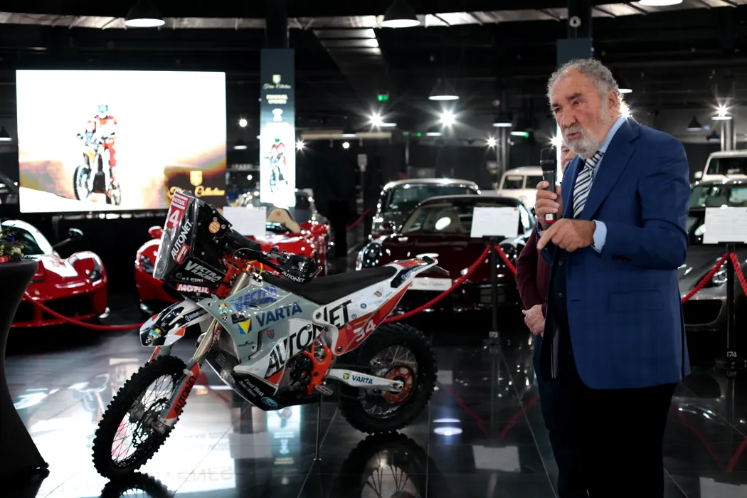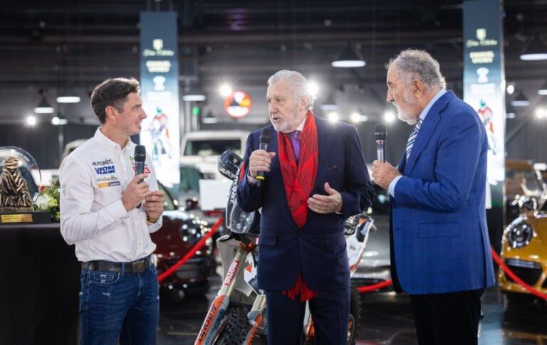 ”Un sportiv care de 15 ori a fost acolo și de la vârsta de 13 ani el face meseria asta… E cererea, că se cere să îl vezi, dar oferta e mai mică. Pentru că nu ai ăia 20.000 de spectatori, ca la tenis. Și figura lui, fața lui, pentru publicitate, nu e acolo în fiecare zi, ore întregi. Și de asta vine tenisul la noi și pe urmă vin alte sporturi. Dar campioni mondiali, campioni olimpici, campioni de toate felurile… Încă nu e probă olimpică, dar după cât am văzut eu acum, că sunt acum probe olimpice la sporturi de nu ați auzit în viața voastră: soft ball, caca ball și, nu știu, alte treburi. Probabil că își merită laurii… L-am cunoscut în zilele în care a început Paris Dakar-ul, pentru că pe vremea aia era condus de un francez care se numea Patrice Claire, și el era președintele cursei. Fusese la Roland Garros șef vreo 30 de ani. Eu vă mulțumesc la toți, îi las pe ei să vă fie parteneri de discuție acum, în special pe Emanuel. Felicitări, respectul meu și mulțumesc că motocicleta care a câștigat vine la muzeu, pentru cei care vizitează. Să o vadă aici cu statuia matale, de carton, îmi pare rău, pentru că asta… Dar respectul meu pentru că te-ai dat jos din avion și în 30 de minute ai fost aici. În spate, unde am garajul și sutele alea de mașini, a făcut dușul și îl vedeți în fața dumneavoastră. Respect pentru caracter, pentru moralitate și pentru sportul pe care l-ai făcut. Să fii sănătos”, i-a transmis Ion Țiriac lui Emanuel Gyenes.