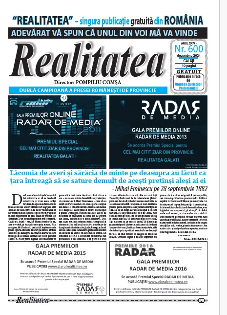 De: Prof.univ. Pompiliu Comșa, membru al UNIUNII ZIARIȘTILOR PROFESIONIȘTI DIN ROMÂNIA, Manager al Trustului de Presă POMPIDU – REALITATEA Galați, cel mai bun gazetar de provincie conform RADAR DE MEDIA 2013;