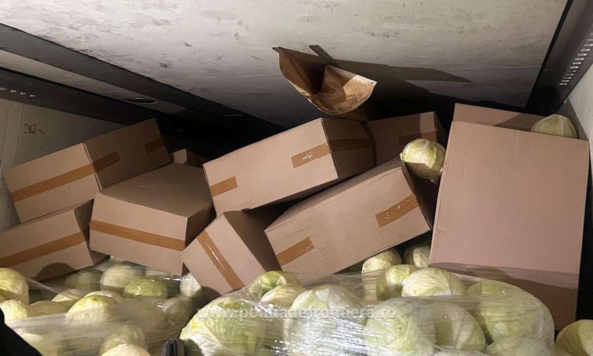 Polițiștii de frontieră din cadrul Sectorului Poliției de Frontieră Petea au descoperit, ascunse într-un camion încărcat cu varză, 65.500 pachete cu țigări fără marcaj fiscale, în valoare totală de 1.350.000 de lei.