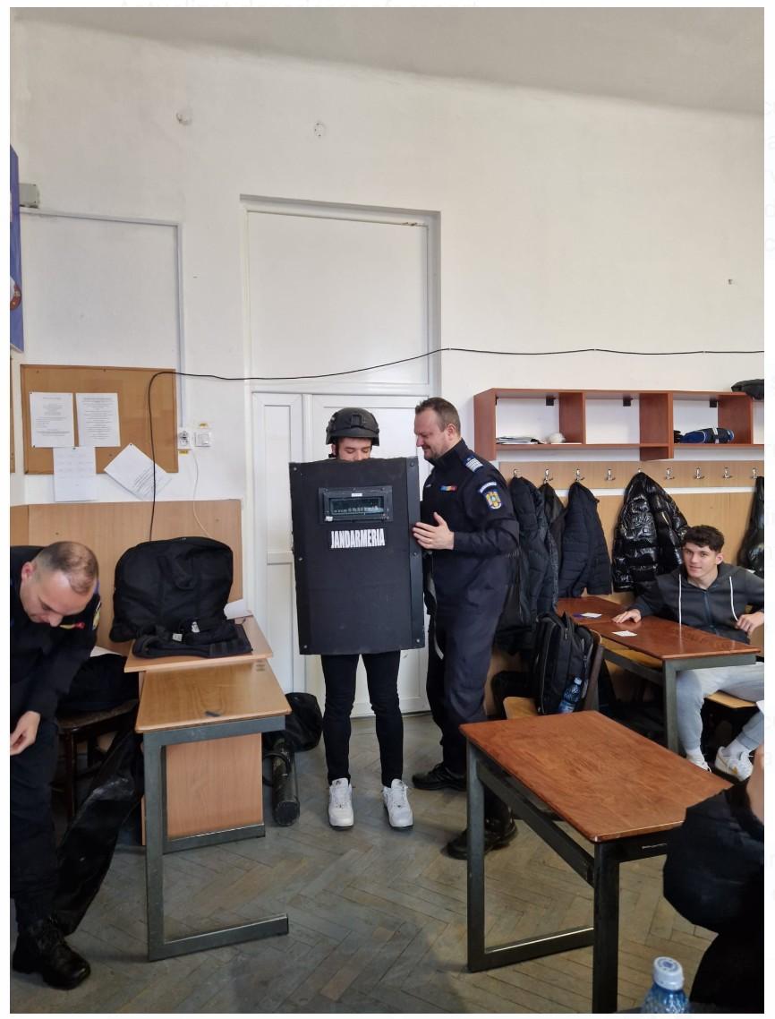 Cu această ocazie elevii au aflat, direct de la sursă, cum arată o carieră în Jandarmeria Română și ce provocare e să reziști cu echipamentul pe tine!