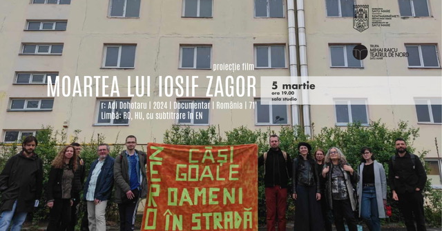 Teatrul de Nord vă invită marți 5 martie, de la ora 19, în Sala Studio, la proiecția documentarului Moartea lui Iosif Zagor, regizat de Adi Dohotaru. Evenimentul va fi urmat de o sesiune interactivă de teatru forum, oferind publicului o oportunitate unică de a reflecta și de a se implica activ în dezbaterea temelor sociale abordate de film.