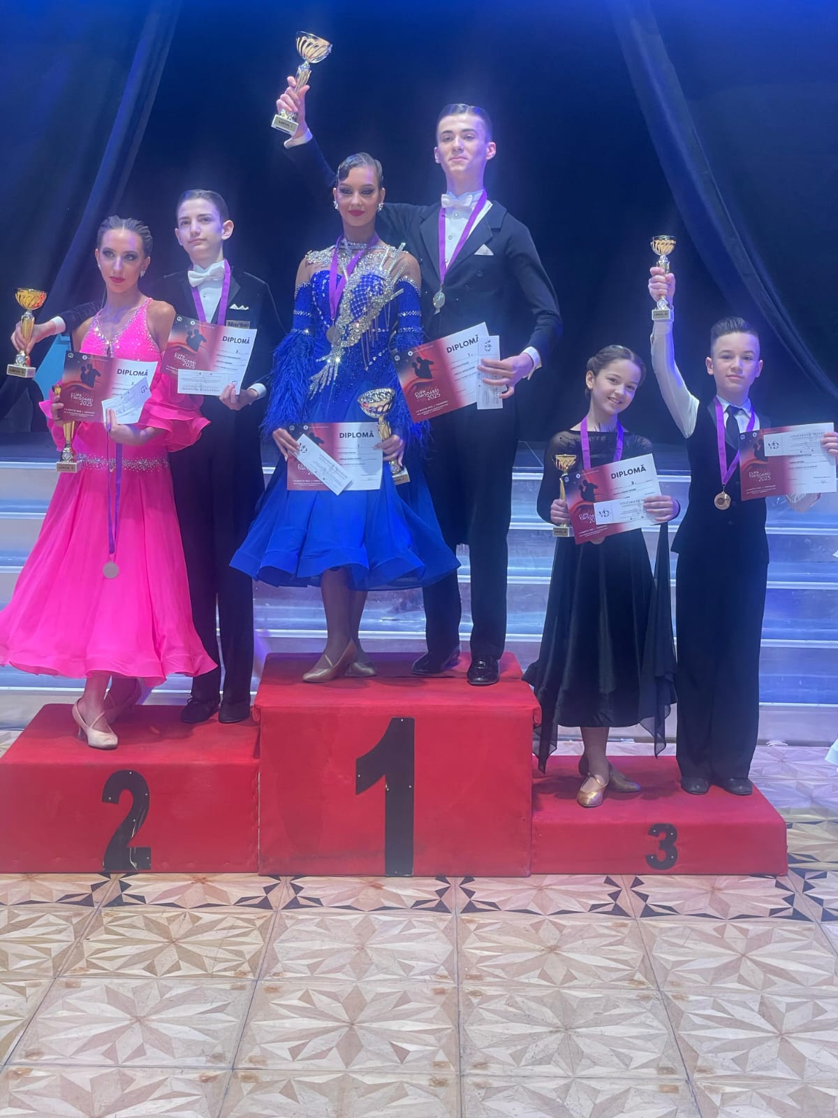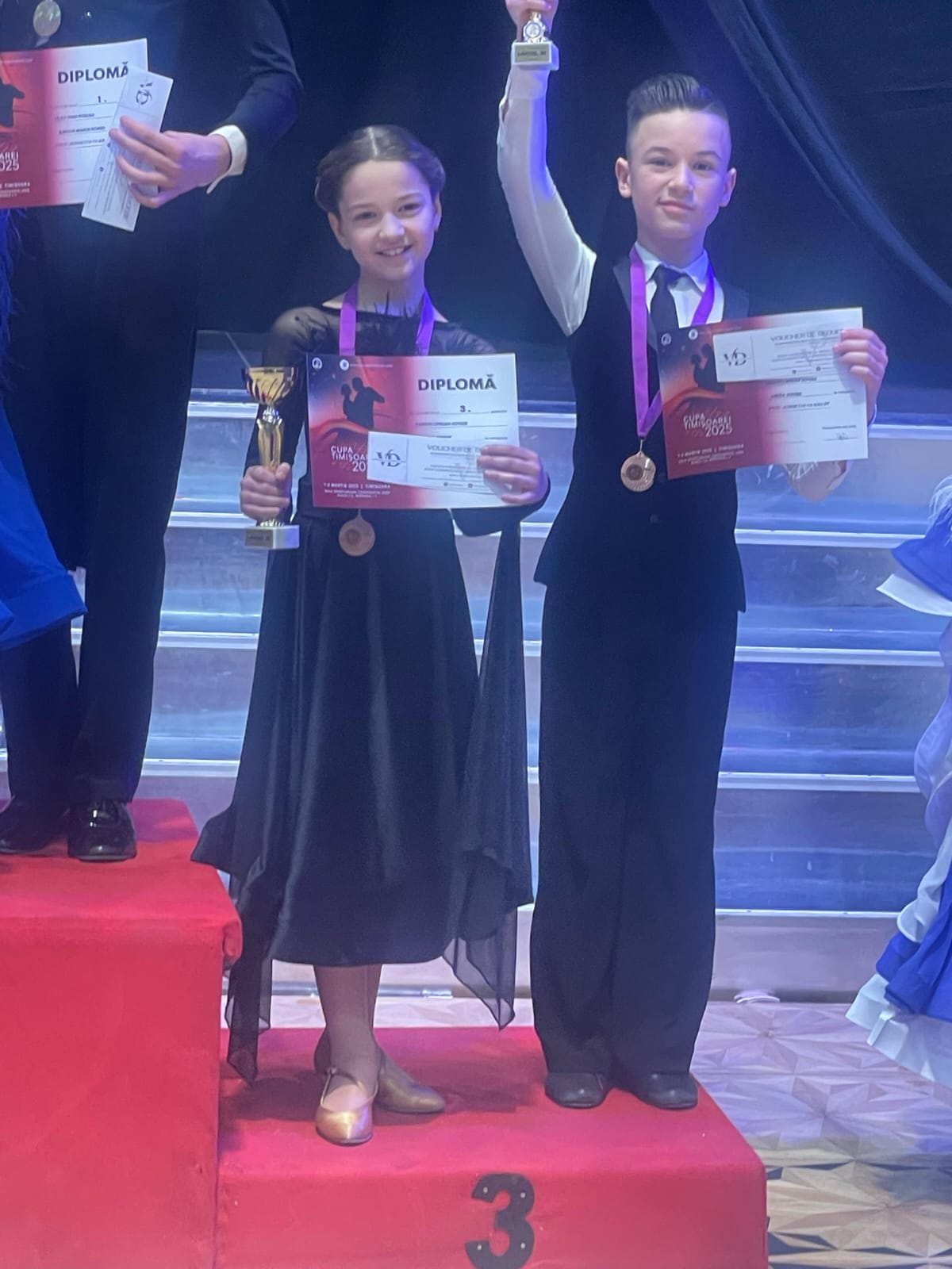 Darius și Amina, dansatori de vârstă 12-15 ani, au obținut locul 1 la clasa D 12-15 ani, aducând medalia de aur binemeritată clubului Royal Dance Club Satu Mare. Performanțele lor nu s-au oprit aici, deoarece perechea a obținut și locul 3 la Open Basic Standard 12-15 ani și locul 4 la Open Basic Latino 12-15 ani, demontrânsdu-și versatilitatea și măiestria pe ringul de dans. În plus, în cadrul Campionatului Național Secțiunea Latino 12-13 ani, au reușit să ajungă pe locul 17, un rezultat remarcabil pentru o pereche atât de tânără și talentată.