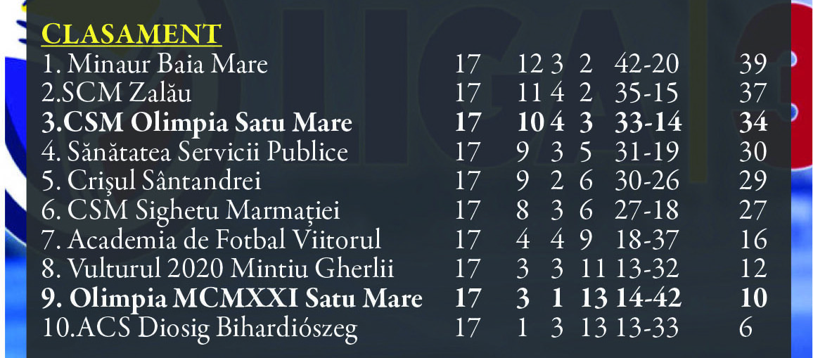 Sezonul regulat al Ligii a 3-a se încheie ân week end iar în seria a 10-a avem parte de derby-ul local dintre SC Olimpia MCMXII și CSM Olimpia. Inițial partida a fost anunțată pentru sâmbătă 15 martie de la ora 15 doar că luni, oficialii echipei gazdă au anunțat că meciul a fost mutat pe vineri 14 martie.