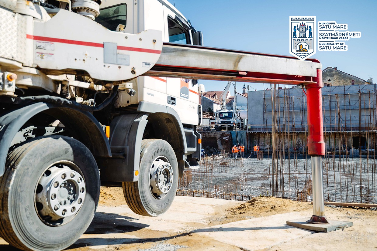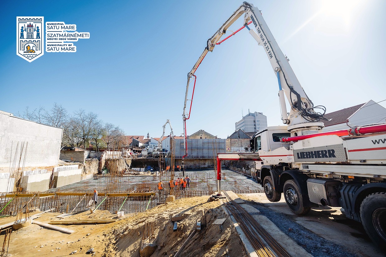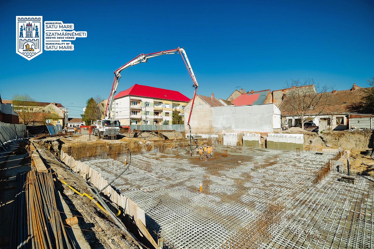 Lucrările la parcarea etajată de pe strada Mihail Kogălniceanu avansează conform graficului. În aceste zile a avut loc o etapă importantă a investiției: turnarea radierului general. Aproximativ 600 mc de beton au fost turnați continuu în fundații, utilizând două pompe de beton și 70 de transporturi cu autobetoniere.