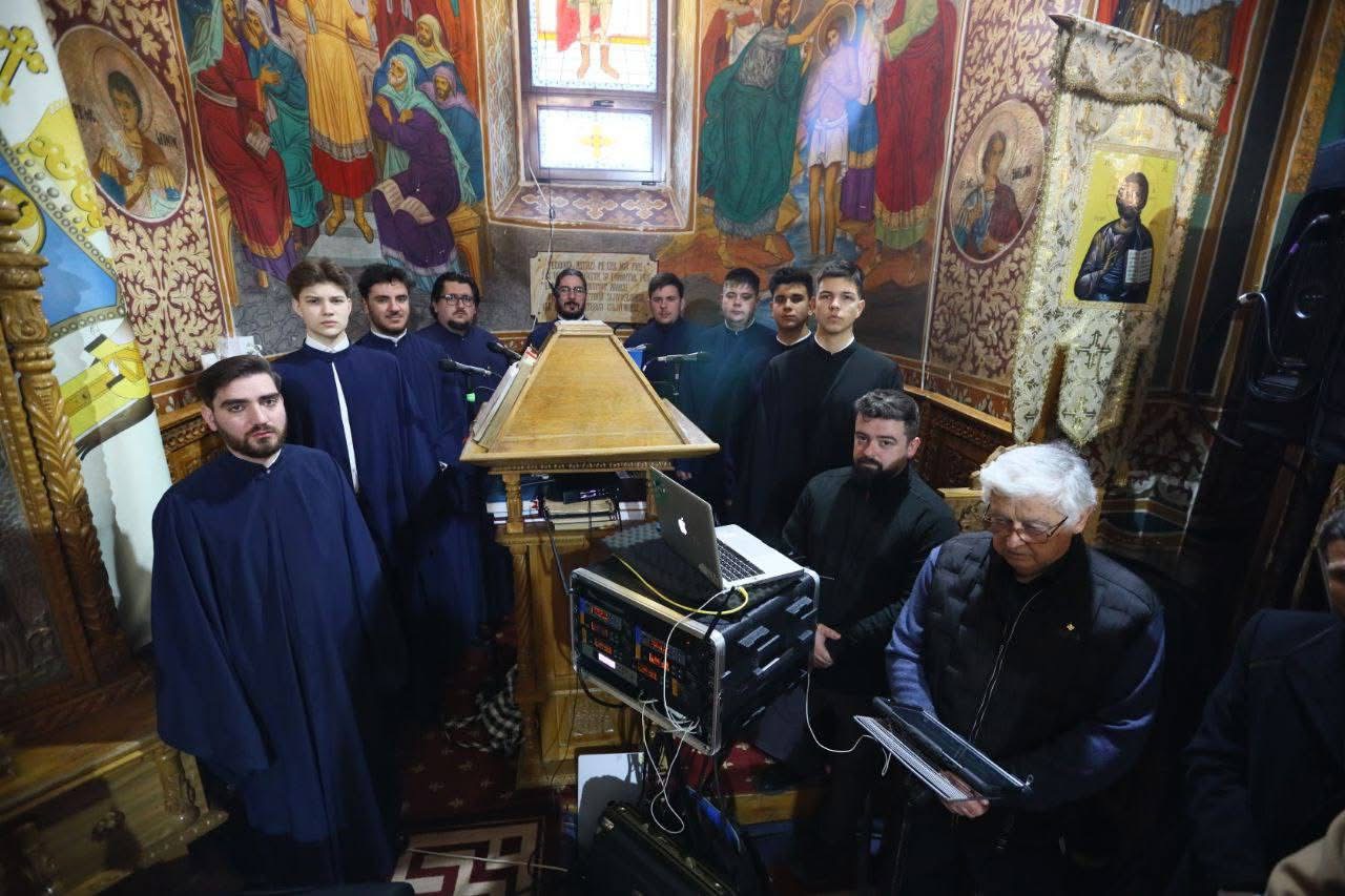Răspunsurile la strană au fost oferite de membrii Grupului psaltic „Sfinții Martiri Brâncoveni”.