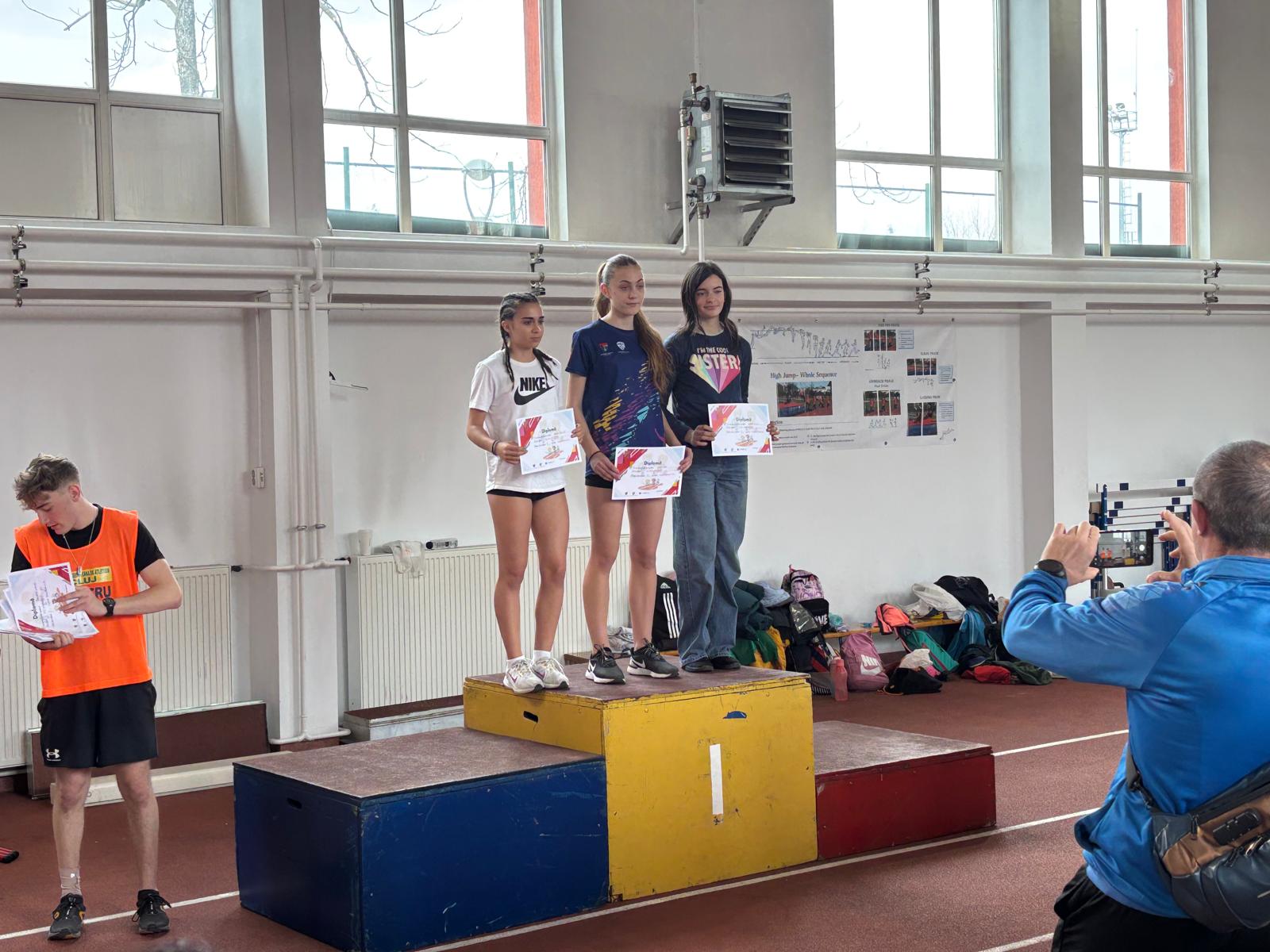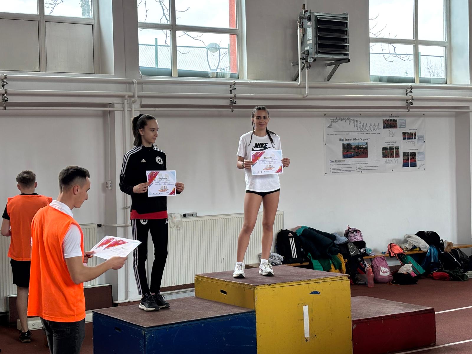 Kerestesz Rita -loc 1, 60 mp , Bartolini Giacomo -loc 2 la 60 mp, Raț Sofia -loc 3 60 mg iar Mureșan Sofia loc 1 la 60 m garduri și loc 2 săritură în lungime.