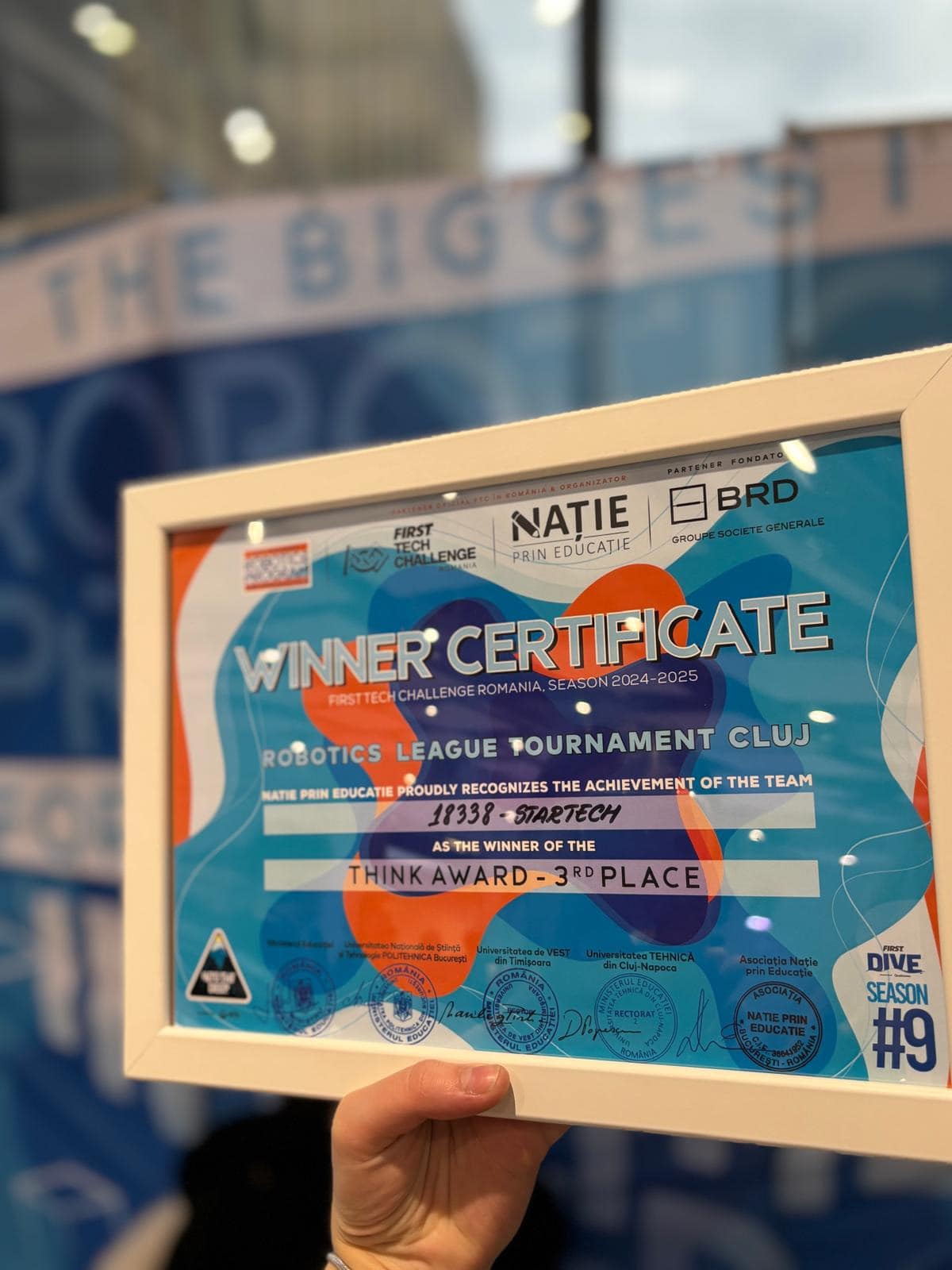 Dedicarea și eforturile depuse au fost recunoscute prin Premiul Think Award 3 , un trofeu care le-a asigurat calificarea la etapa națională a competiției FIRST Tech Challenge. Acest premiu este acordat echipelor care demonstrează creativitate și inovație proiectarea și dezvoltarea robotului, reflectând progresul lor pe sezonului.