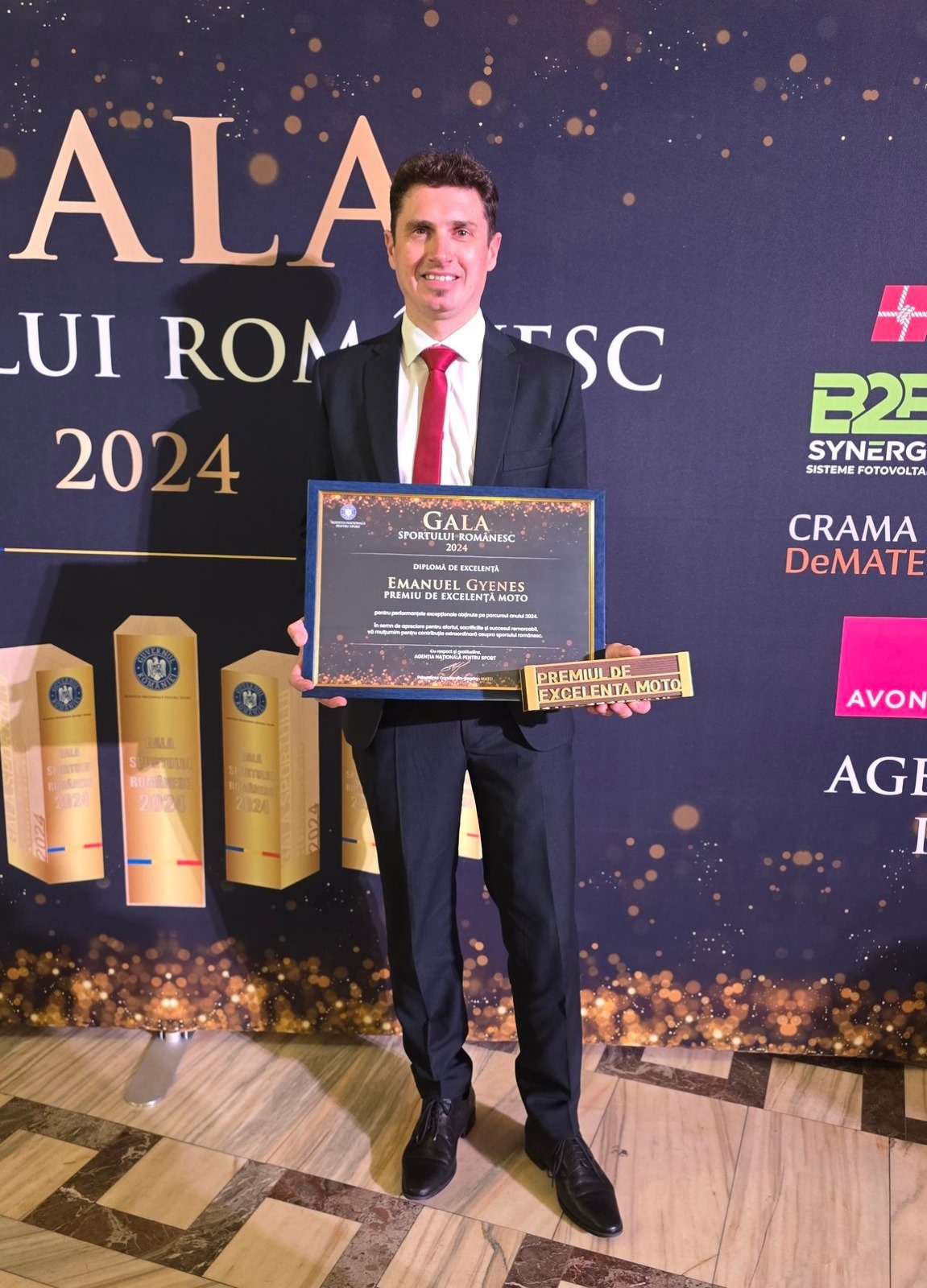 Gala Sportului Romanesc 2024 este astfel prima Gala in care este premiat un sportiv al FRM, iar Emanuel Gyenes - Mani este singurul pilot roman care a primit pana acum aceasta distinctie.