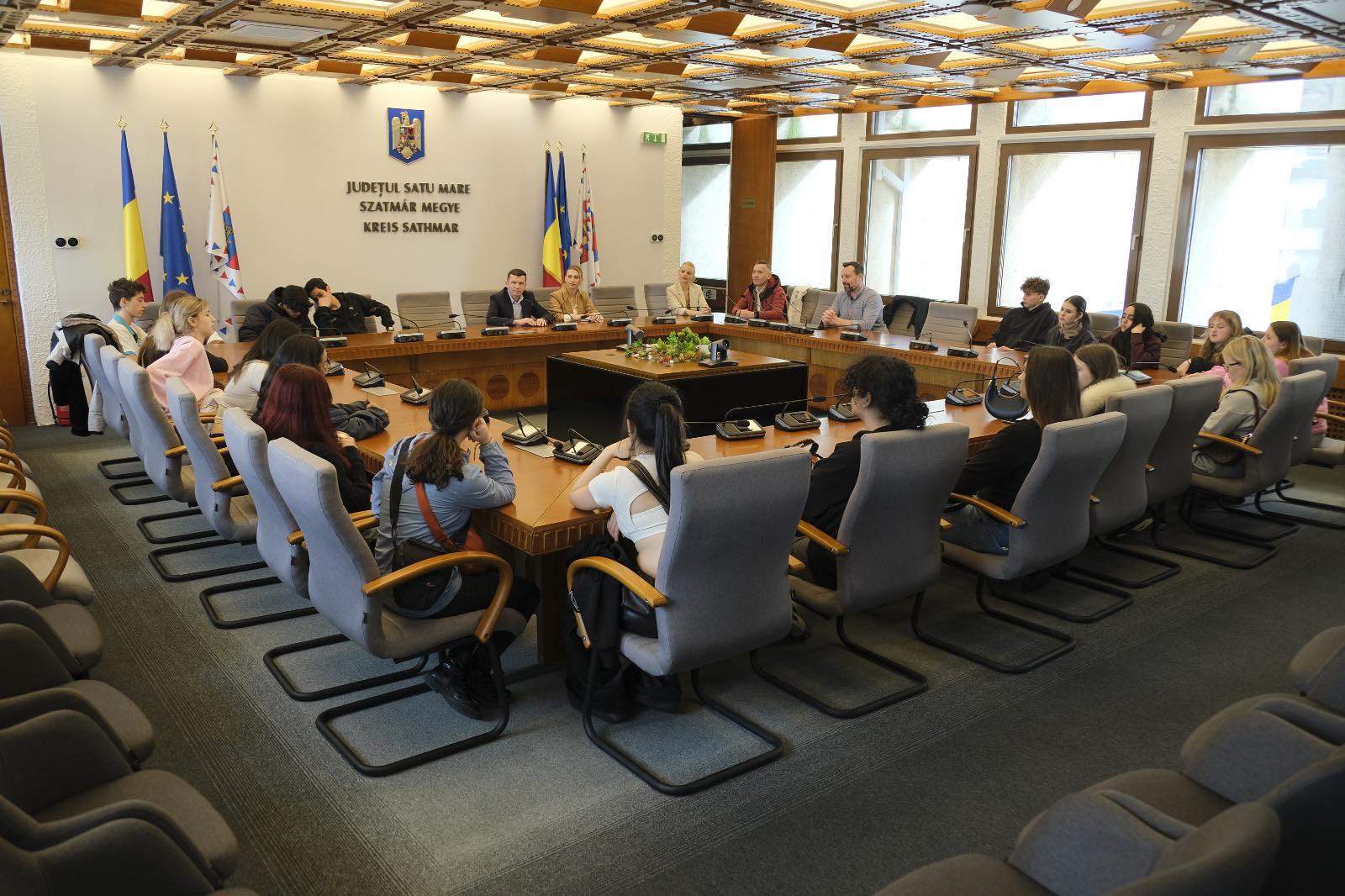 Un grup de elevi din mai multe state ale lumii, membri ai Rotary Internațional, împreună cu colegii lor din Rotary Club Satu Mare Samus, au avut ocazia să exploreze joi Palatul Administrativ din Satu Mare. Aceștia au fost primiți de vicepreședinții Consiliului Județean, Roxana Petca și Cătălin Filip, care le-au oferit informații despre funcționarea administrației locale și rolul consilierilor județeni în dezvoltarea comunității.