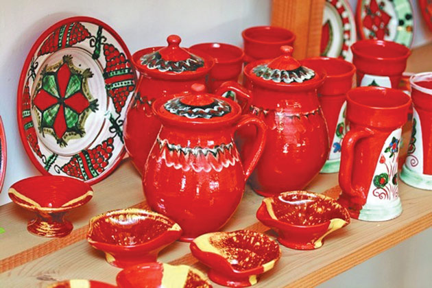 Produsele ceramice din acest centru pot sta alături de binecunoscutele vase de Hurezu, Obiga etc., valoarea lor fiind dată de perfecţiunea tehnicilor de olărit folosite de meşteri, de formele caracteristice ale vaselor şi de ornamentaţia specifică. Vasele au o formă cu totul deosebită de cele care se fac în restul ţării: corpul foarte bombat e legat direct de gura trilobată a ulciorului; o toartă mare în formă de semicerc, groasă şi rotundă, şi cu o „ţâţă” care întregeşte aspectul rotund al întregului ulcior, aspect accentuat şi de ornamentele sale caracteristice. Este obiceiul ca, în ziua de Paşti, finii merg la nănaşi şi le duc „ol de nănaş”, pe care aceştia îl păstrează agăţat în grindă. După numărul olurilor se poate şti câţi fini are naşul – vase decorative: farfurii şi oluri.
