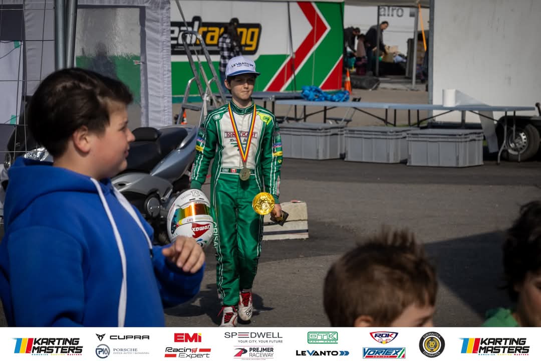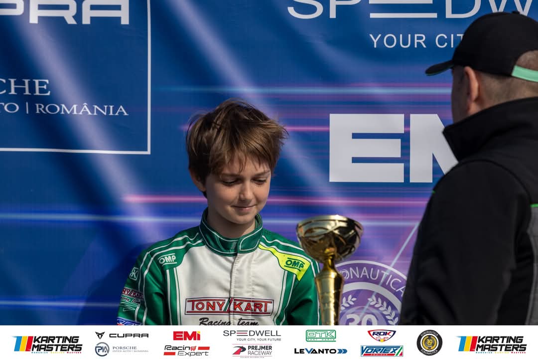 Astfel obține un bine meritat si muncit loc 3 la general si este pe podium in prima etapa a Romanian Karting Masters.