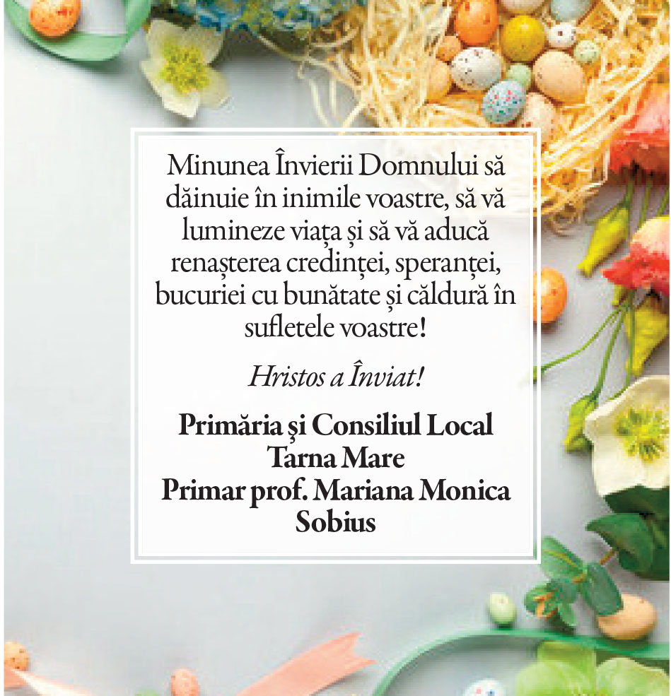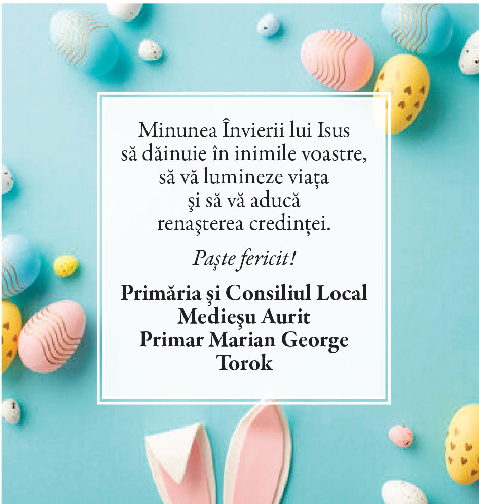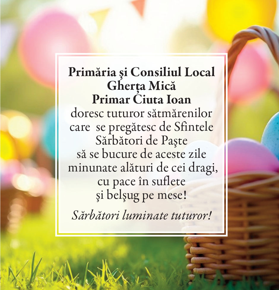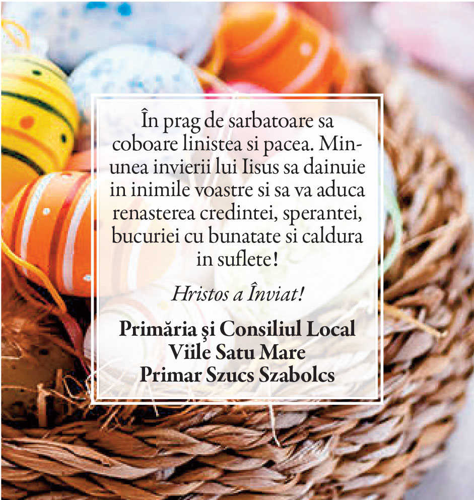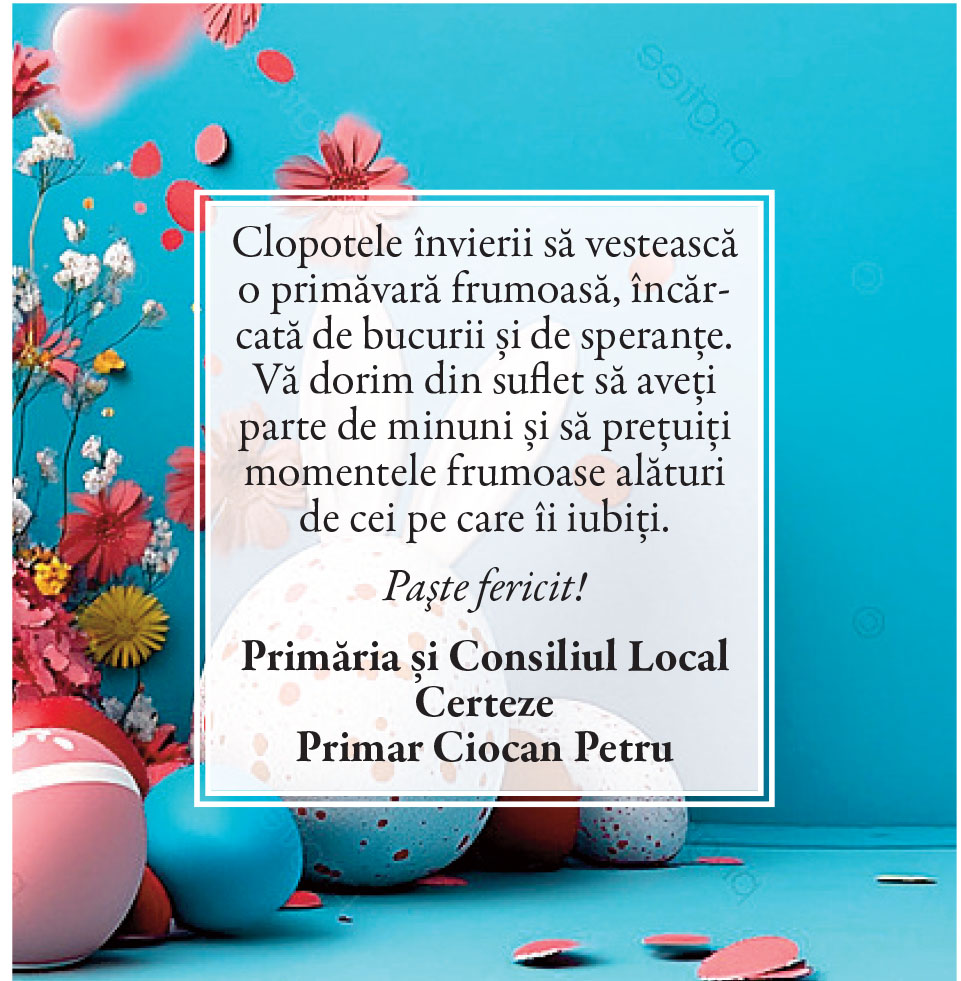 Felicitări de Paşte - Primării/instituţii Locale • 19.04.2025 00:00 |||||||||||||||||||||| Distribuie: Primește ziarul gratuit pe email! Abonează-te și citești ziarul Gazeta Nord-Vest zilnic, gratuit. Abonează-te Acasa Locale Felicitări de Paşte - Primării/instituţii Articole Similare Locale Activități dedicate Zilei Mondiale a Apei. Concurs de desen, experimente și lecții despre natură pentru elevii din Medieșu Aurit acum 16 ore Locale Campania APIA 2026 – clarificări privind eliberarea adeverințelor necesare fermierilor pentru obținerea subvențiilor acum 16 ore Locale Acțiune de amploare a polițiștilor în Ardud și Beltiug: amenzi de peste 57.000 de lei și lemn confiscat acum 16 ore Locale Împreună hrănim speranța: Federația Băncilor pentru Alimente dă startul celei de-a 14-a ediții a Colectei Naționale de Alimente în Lidl, PENNY, Auchan, Kaufland și Profi acum 17 ore Locale „Maratonul poveștilor”, la Biblioteca Județeană Satu Mare, de Ziua Internațională a Cărții pentru Copii și Tineret acum 18 ore Locale Polițiștii locali intensifică acțiunile împotriva cerșetoriei în Satu Mare acum 19 ore Ultimele Articole Locale Complexul de Educație Ecologică „Casa verde” din Grădina Romei, a fost gazda festivității de lansare a unui nou proiect de mediu cu titlul: GRĂDINIȚE SALVATOARE DE RÂURI acum 11 ore Locale Viceprimarul Cristina Tămășan Ilieș felicită Poliția Locală. Acțiuni intensificate împotriva cerșetoriei în Satu Mare acum 12 ore Locale Peste 10.000 de cărți electronice de identitate emise în Satu Mare. Viceprimarul Raul Băbțan: „Digitalizarea devine realitate” acum 12 ore Locale Deputatul Mircea Govor: Bugetul României a fost adoptat. Investiții importante pentru județul Satu Mare acum 12 ore Locale Cea mai mare creșă din Satu Mare, aproape de finalizare: 110 locuri pentru copii acum 12 ore Locale Deratizare în Satu Mare, în perioada 23–27 martie 2026. Avertisment pentru populație acum 12 ore Cele mai citite 1 Complexul de Educație Ecologică „Casa verde” din Grădina Romei, a fost gazda festivității de lansare a unui nou proiect de mediu cu titlul: GRĂDINIȚE SALVATOARE DE RÂURI 2 NORD VEST TV. Slăbitul cu injecții, între speranță și risc. Avertismentul unui medic gastroenterolog din Satu Mare 3 Cea mai mare creșă din Satu Mare, aproape de finalizare: 110 locuri pentru copii 4 Viceprimarul Cristina Tămășan Ilieș felicită Poliția Locală. Acțiuni intensificate împotriva cerșetoriei în Satu Mare 5 APASERV. Grupa Albinuțelor de la Grădinița 14 Mai a descoperit drumul apei Din aceeasi categorie Complexul de Educație Ecologică „Casa verde” din Grădina Romei, a fost gazda festivității de lansare a unui nou proiect de mediu cu titlul: GRĂDINIȚE SALVATOARE DE RÂURI acum 11 ore Viceprimarul Cristina Tămășan Ilieș felicită Poliția Locală. Acțiuni intensificate împotriva cerșetoriei în Satu Mare acum 12 ore Peste 10.000 de cărți electronice de identitate emise în Satu Mare. Viceprimarul Raul Băbțan: „Digitalizarea devine realitate” acum 12 ore Deputatul Mircea Govor: Bugetul României a fost adoptat. Investiții importante pentru județul Satu Mare acum 12 ore Cea mai mare creșă din Satu Mare, aproape de finalizare: 110 locuri pentru copii acum 12 ore Ultimele stiri Complexul de Educație Ecologică „Casa verde” din Grădina Romei, a fost gazda festivității de lansare a unui nou proiect de mediu cu titlul: GRĂDINIȚE SALVATOARE DE RÂURI acum 11 ore Viceprimarul Cristina Tămășan Ilieș felicită Poliția Locală. Acțiuni intensificate împotriva cerșetoriei în Satu Mare acum 12 ore Peste 10.000 de cărți electronice de identitate emise în Satu Mare. Viceprimarul Raul Băbțan: „Digitalizarea devine realitate” acum 12 ore Deputatul Mircea Govor: Bugetul României a fost adoptat. Investiții importante pentru județul Satu Mare acum 12 ore Cea mai mare creșă din Satu Mare, aproape de finalizare: 110 locuri pentru copii acum 12 ore