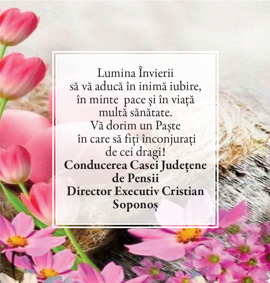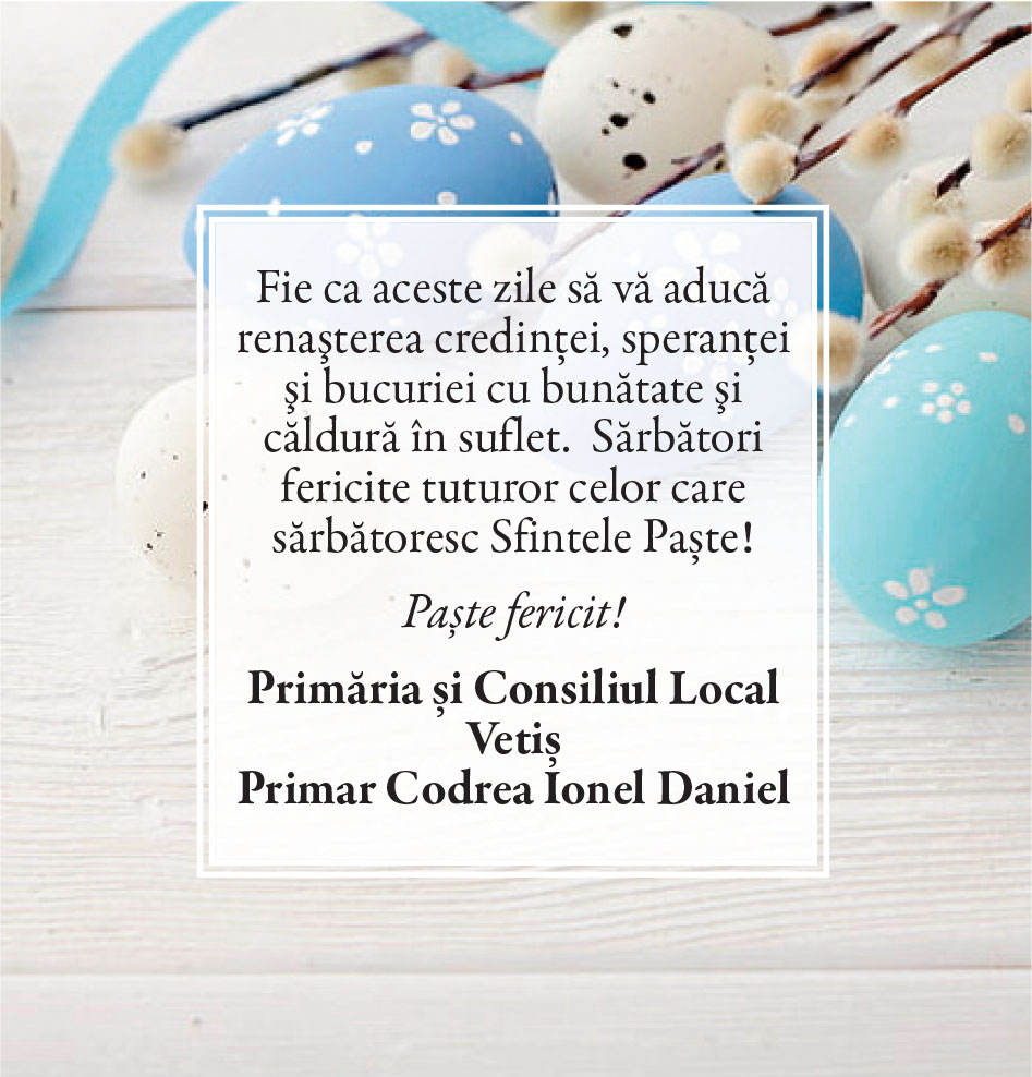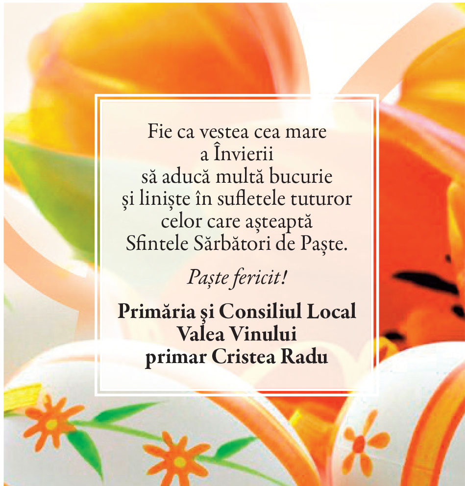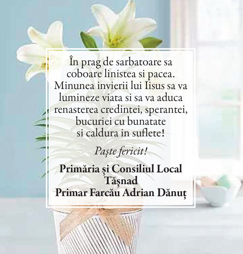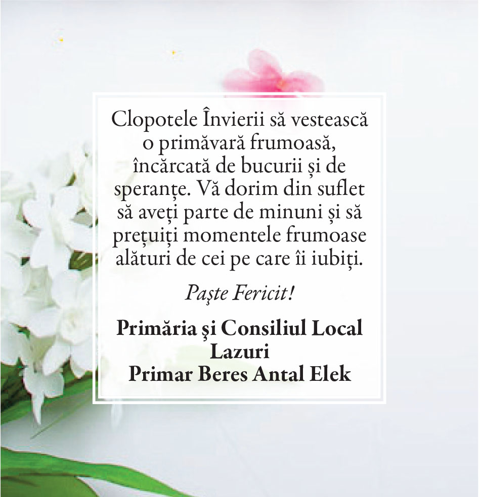 Felicitări de Paşte - Primării/instituţii Locale • 19.04.2025 00:00 |||||||||||||||||||||| Distribuie: Primește ziarul gratuit pe email! Abonează-te și citești ziarul Gazeta Nord-Vest zilnic, gratuit. Abonează-te Acasa Locale Felicitări de Paşte - Primării/instituţii Articole Similare Locale Activități dedicate Zilei Mondiale a Apei. Concurs de desen, experimente și lecții despre natură pentru elevii din Medieșu Aurit acum 16 ore Locale Campania APIA 2026 – clarificări privind eliberarea adeverințelor necesare fermierilor pentru obținerea subvențiilor acum 16 ore Locale Acțiune de amploare a polițiștilor în Ardud și Beltiug: amenzi de peste 57.000 de lei și lemn confiscat acum 16 ore Locale Împreună hrănim speranța: Federația Băncilor pentru Alimente dă startul celei de-a 14-a ediții a Colectei Naționale de Alimente în Lidl, PENNY, Auchan, Kaufland și Profi acum 17 ore Locale „Maratonul poveștilor”, la Biblioteca Județeană Satu Mare, de Ziua Internațională a Cărții pentru Copii și Tineret acum 18 ore Locale Polițiștii locali intensifică acțiunile împotriva cerșetoriei în Satu Mare acum 19 ore Ultimele Articole Locale Complexul de Educație Ecologică „Casa verde” din Grădina Romei, a fost gazda festivității de lansare a unui nou proiect de mediu cu titlul: GRĂDINIȚE SALVATOARE DE RÂURI acum 11 ore Locale Viceprimarul Cristina Tămășan Ilieș felicită Poliția Locală. Acțiuni intensificate împotriva cerșetoriei în Satu Mare acum 12 ore Locale Peste 10.000 de cărți electronice de identitate emise în Satu Mare. Viceprimarul Raul Băbțan: „Digitalizarea devine realitate” acum 12 ore Locale Deputatul Mircea Govor: Bugetul României a fost adoptat. Investiții importante pentru județul Satu Mare acum 12 ore Locale Cea mai mare creșă din Satu Mare, aproape de finalizare: 110 locuri pentru copii acum 12 ore Locale Deratizare în Satu Mare, în perioada 23–27 martie 2026. Avertisment pentru populație acum 12 ore Cele mai citite 1 Complexul de Educație Ecologică „Casa verde” din Grădina Romei, a fost gazda festivității de lansare a unui nou proiect de mediu cu titlul: GRĂDINIȚE SALVATOARE DE RÂURI 2 NORD VEST TV. Slăbitul cu injecții, între speranță și risc. Avertismentul unui medic gastroenterolog din Satu Mare 3 Cea mai mare creșă din Satu Mare, aproape de finalizare: 110 locuri pentru copii 4 Viceprimarul Cristina Tămășan Ilieș felicită Poliția Locală. Acțiuni intensificate împotriva cerșetoriei în Satu Mare 5 APASERV. Grupa Albinuțelor de la Grădinița 14 Mai a descoperit drumul apei Din aceeasi categorie Complexul de Educație Ecologică „Casa verde” din Grădina Romei, a fost gazda festivității de lansare a unui nou proiect de mediu cu titlul: GRĂDINIȚE SALVATOARE DE RÂURI acum 11 ore Viceprimarul Cristina Tămășan Ilieș felicită Poliția Locală. Acțiuni intensificate împotriva cerșetoriei în Satu Mare acum 12 ore Peste 10.000 de cărți electronice de identitate emise în Satu Mare. Viceprimarul Raul Băbțan: „Digitalizarea devine realitate” acum 12 ore Deputatul Mircea Govor: Bugetul României a fost adoptat. Investiții importante pentru județul Satu Mare acum 12 ore Cea mai mare creșă din Satu Mare, aproape de finalizare: 110 locuri pentru copii acum 12 ore Ultimele stiri Complexul de Educație Ecologică „Casa verde” din Grădina Romei, a fost gazda festivității de lansare a unui nou proiect de mediu cu titlul: GRĂDINIȚE SALVATOARE DE RÂURI acum 11 ore Viceprimarul Cristina Tămășan Ilieș felicită Poliția Locală. Acțiuni intensificate împotriva cerșetoriei în Satu Mare acum 12 ore Peste 10.000 de cărți electronice de identitate emise în Satu Mare. Viceprimarul Raul Băbțan: „Digitalizarea devine realitate” acum 12 ore Deputatul Mircea Govor: Bugetul României a fost adoptat. Investiții importante pentru județul Satu Mare acum 12 ore Cea mai mare creșă din Satu Mare, aproape de finalizare: 110 locuri pentru copii acum 12 ore