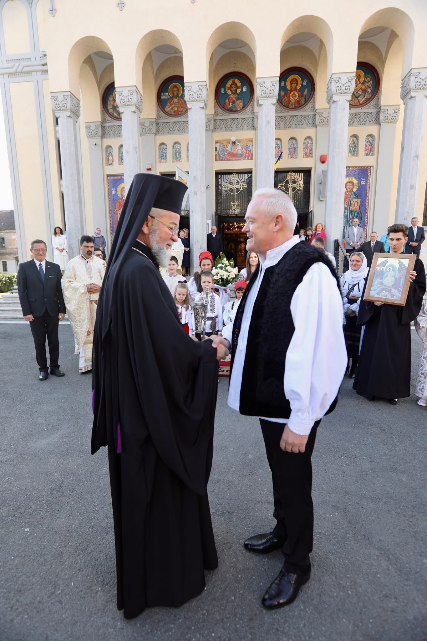 După otpust, părintele paroh Cristian Boloș a mulțumit tuturor pentru frumoasa sărbătoare a zile, care a umplut inimile credincioșilor de bucurie și a oferit Preasfințitului Părinte Episcop Iustin, pentru muzeul eparhial, Icoana praznicului Învierii Domnului.