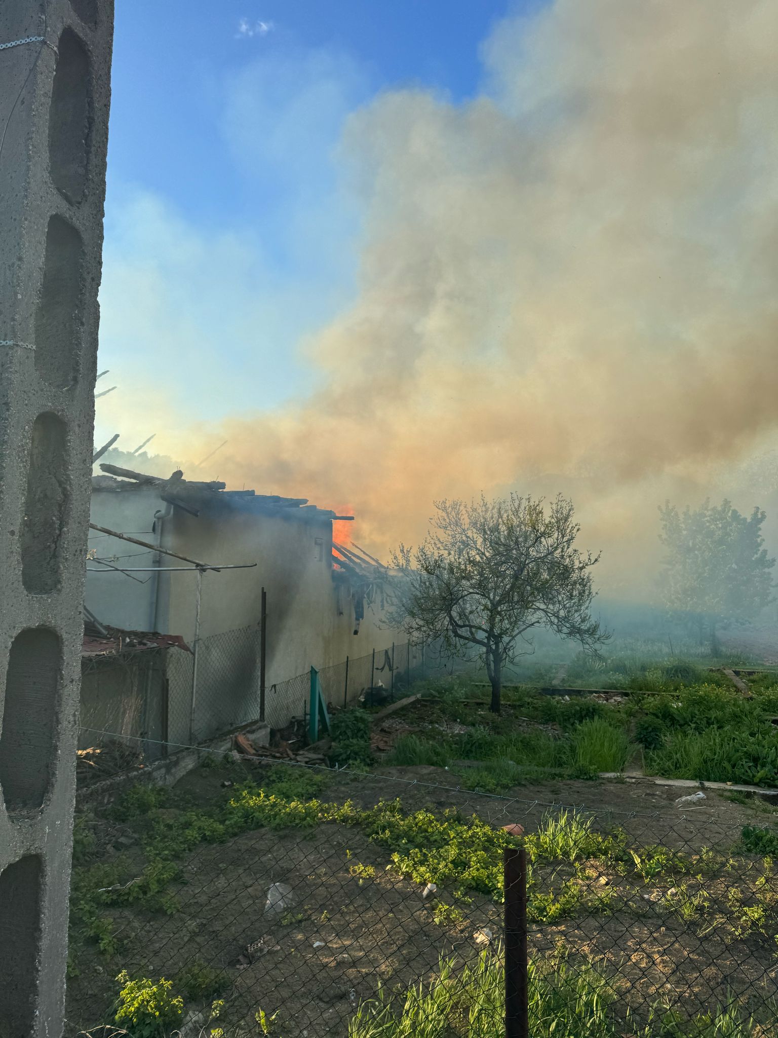 La sosirea echipajelor profesioniste, incendiul se manifesta la o anexă gospodărească și la acoperișul casei de locuit, pe o suprafață de aproximativ 200 m².
