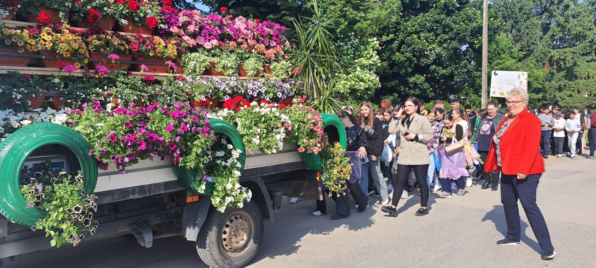Carul alegoric spectaculos, decorat cu ghivece de flori, a încheiat traseul caravanei cu vizite în alte patru localități sătmărene: Micula – Școala Gimnazială „Gellért Sándor”, Lazuri – Școala Gimnazială „Petőfi Sándor”, Dorolț – Școala Gimnazială, Vetiș – Școala Gimnazială