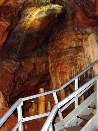 Amenajarea peşterii a fost realizată utilizând tehnologii moderne, care răspund atât cerinţelor unei amenajări de înalt nivel tehnologic, cât şi cerinţelor ecologice (amenajare prietenoasă cu mediul). Întreg parcursul destinat turismului de masă este amenajat cu poteci, scări şi balustrade din plastic ranforsat cu fibră de sticlă, cu sistem de iluminare LED, care ghidează turistul spre misterele uimitoare ale peşterii.