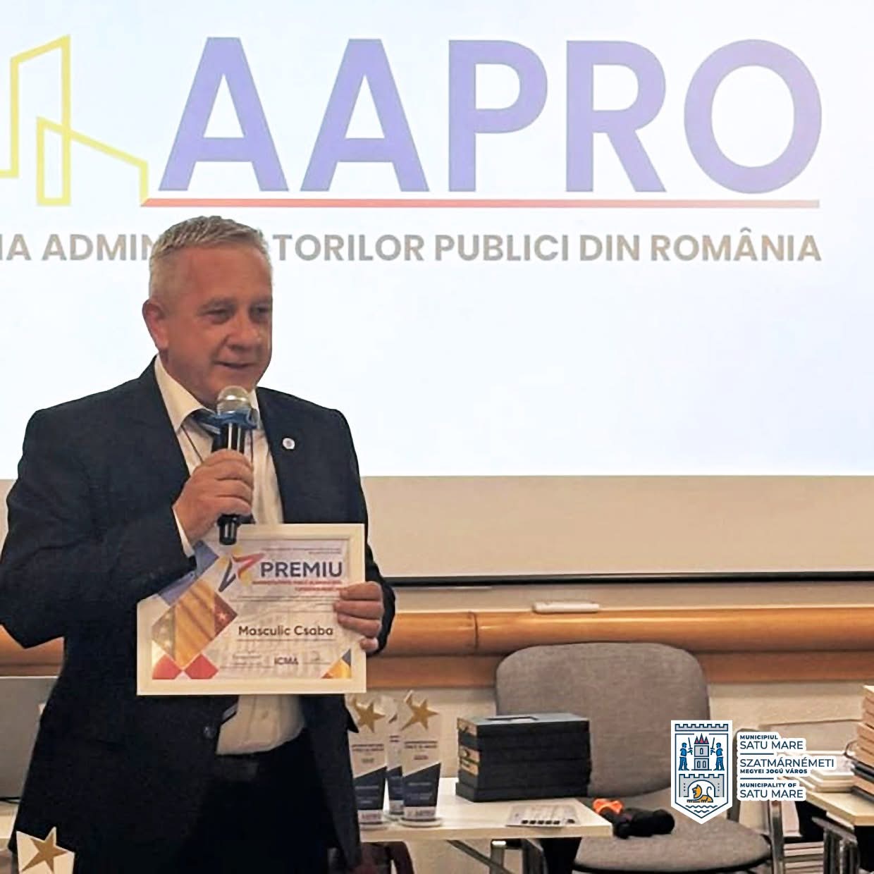 Premiul ,,Administratorul public al anului 2024 în România’’ ajunge la Satu Mare! Distincția i-a fost înmânată administratorului public Maskulik Csaba în cadrul Galei Conferinței Naționale a Administratorilor Publici din România.