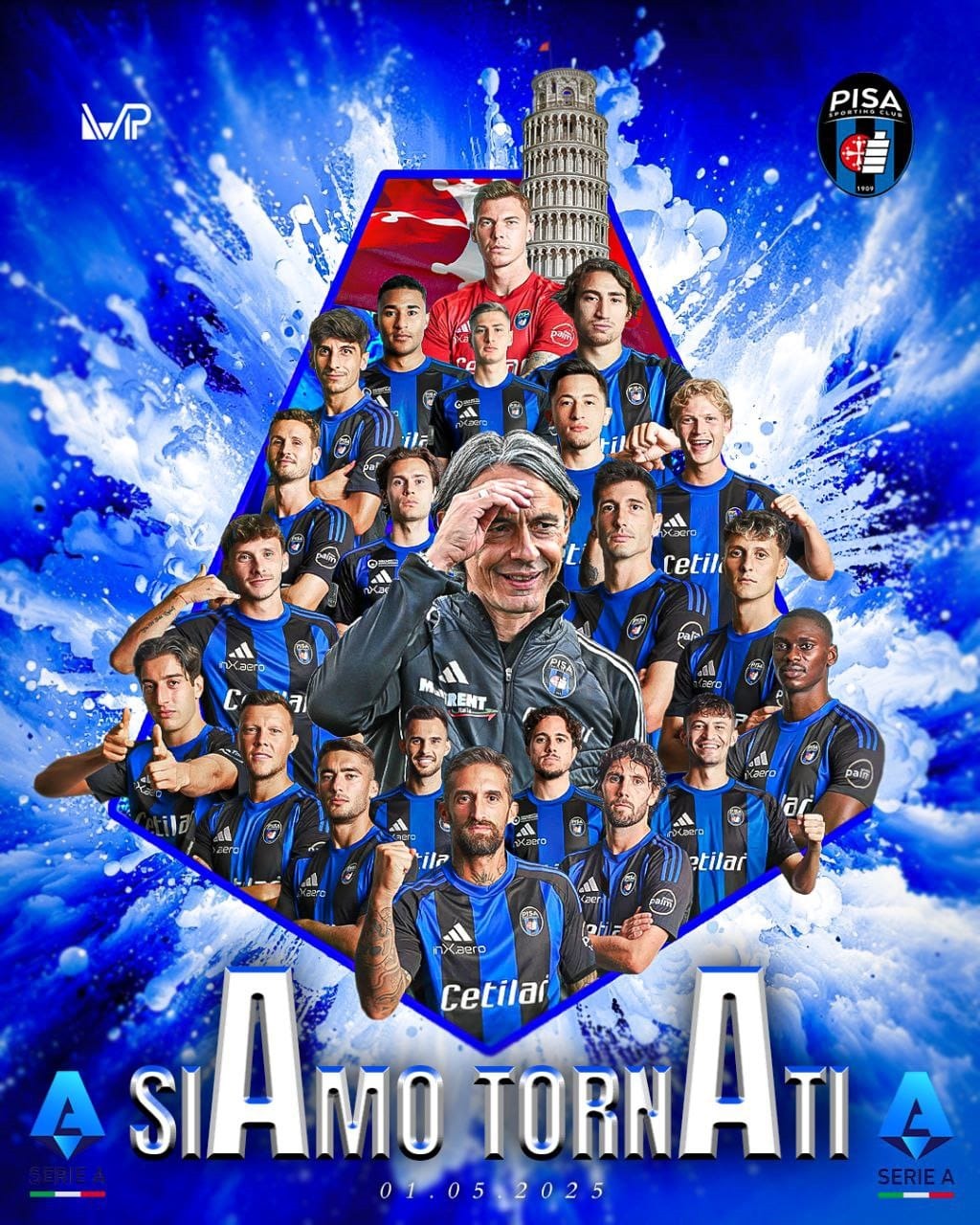 Pisa ocupă locul al doilea în Serie B cu 72 de puncte și cu două etape rămase de disputat are un avans de nouă puncte față de a treia clasată Spezia.