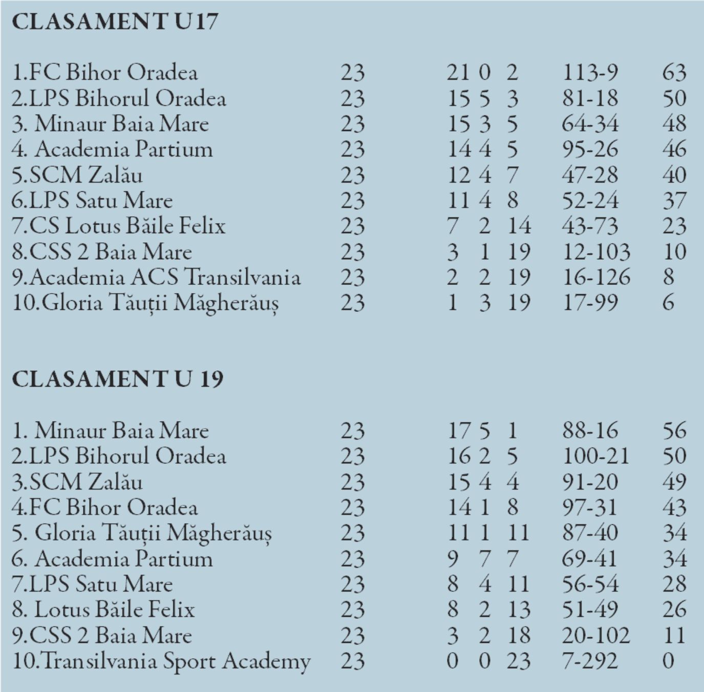 La finalul săptămânii trecute a avut loc etapa a 23-a a Campionatului Național de juniori U17.