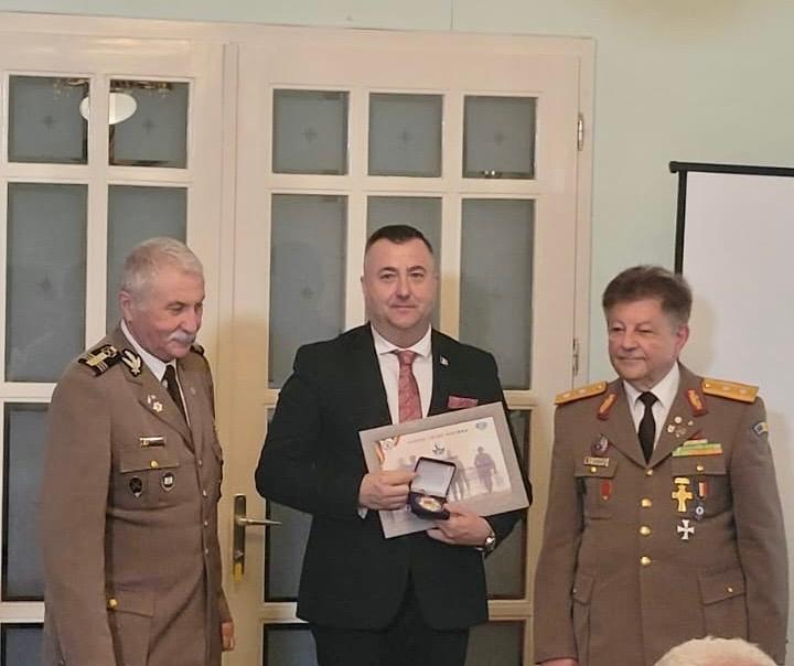 Consulul general Florin Vasiloni, PS Siluan și prof. Gheorghe Petrușan au primit din partea Asociației Cultului Eroilor ”Ziridava” din Arad, diplome și medalii aniversare.