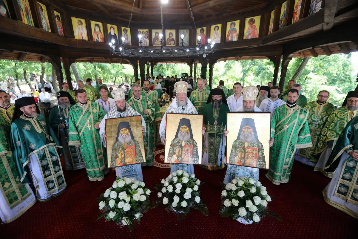Trei ierarhi în mijlocul credincioșilor