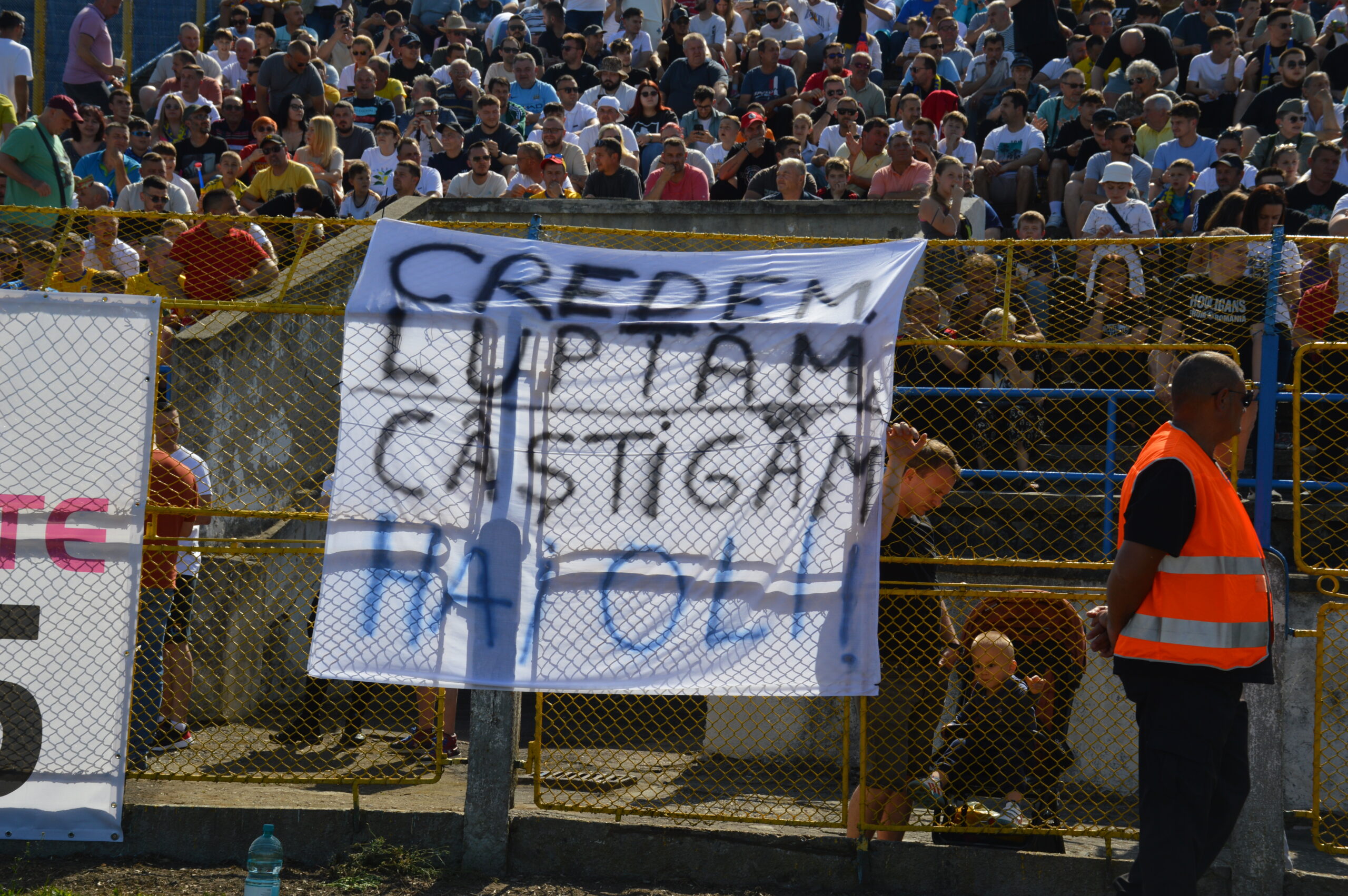 Sâmbătă după amiază lumea s-a adunat la stadion mai ceva ca la ”the Urs”. Bătrânul stadion Olimpia-Daniel Prodan n-a mai văzut atâta lume adunată laolaltă la un eveniment fotbalistic de mai bine de zece ani, de pe vremea când, revenită în Liga a 2-a, Olimpia, antrenată atunci de Tibi Csik se bătea de la egal la egal CSU Craiova, Reșița, UTA sau ASA Târgu Mureș.