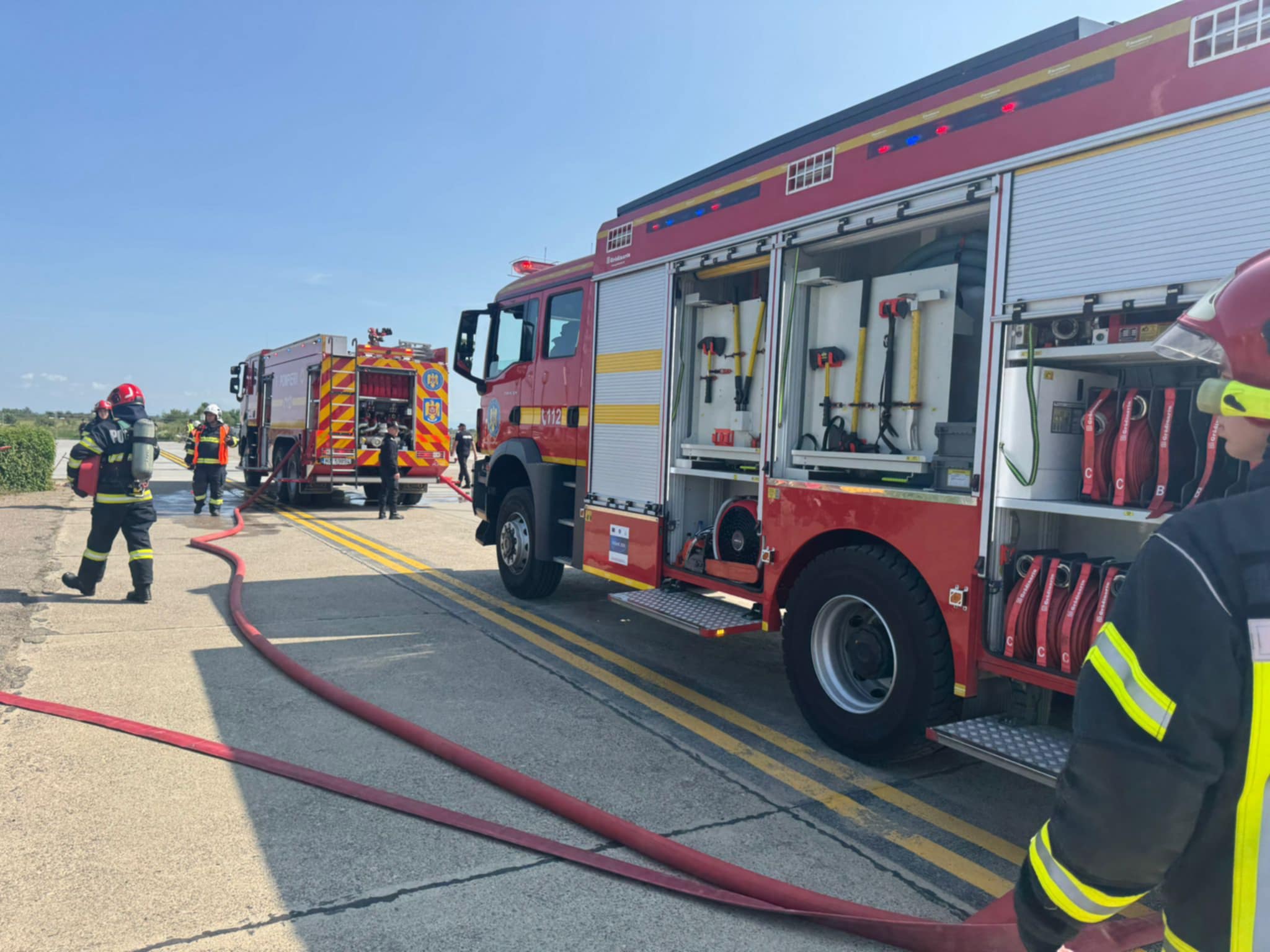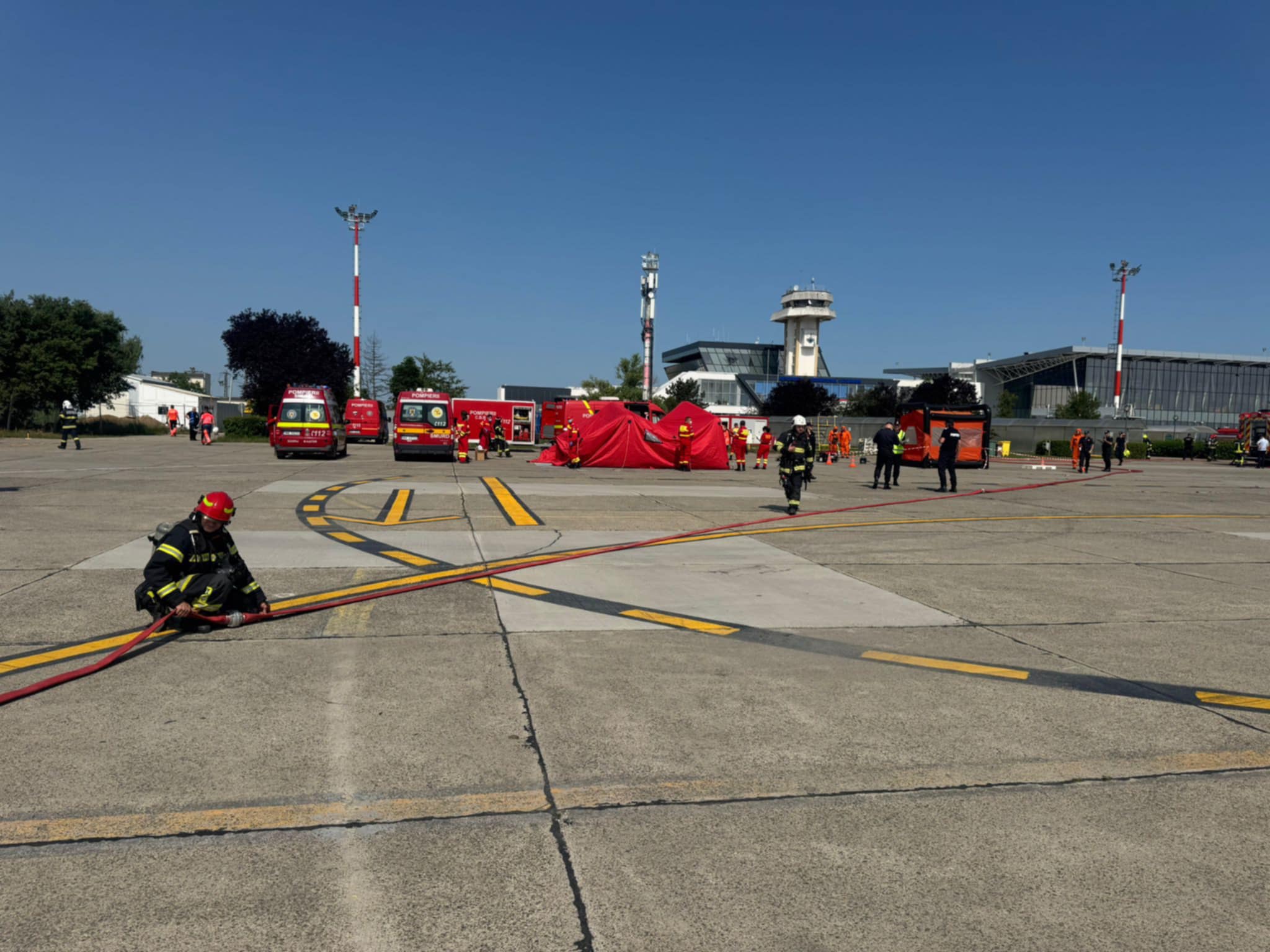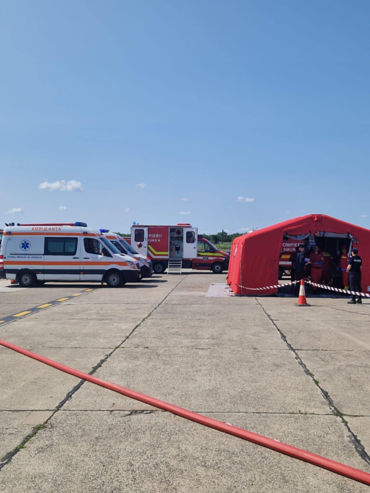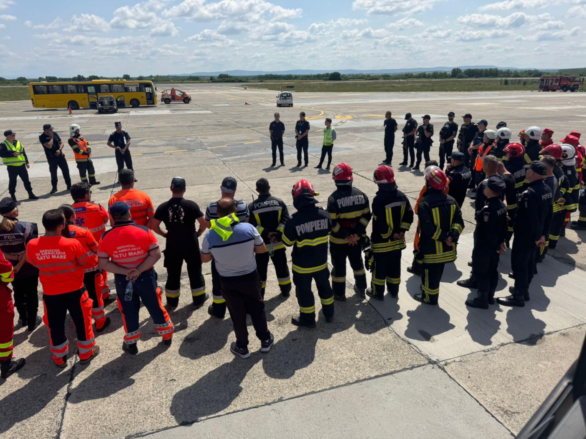 Conform scenariului exercițiului, în data de 12.06.2025, la ora 10:00, în incinta Aeroportului Internațional Satu Mare se produce un incident între o autoutilitară care transporta o sursă radiologică artificială pentru uz medical și un avion garat la terminalul de sosiri.