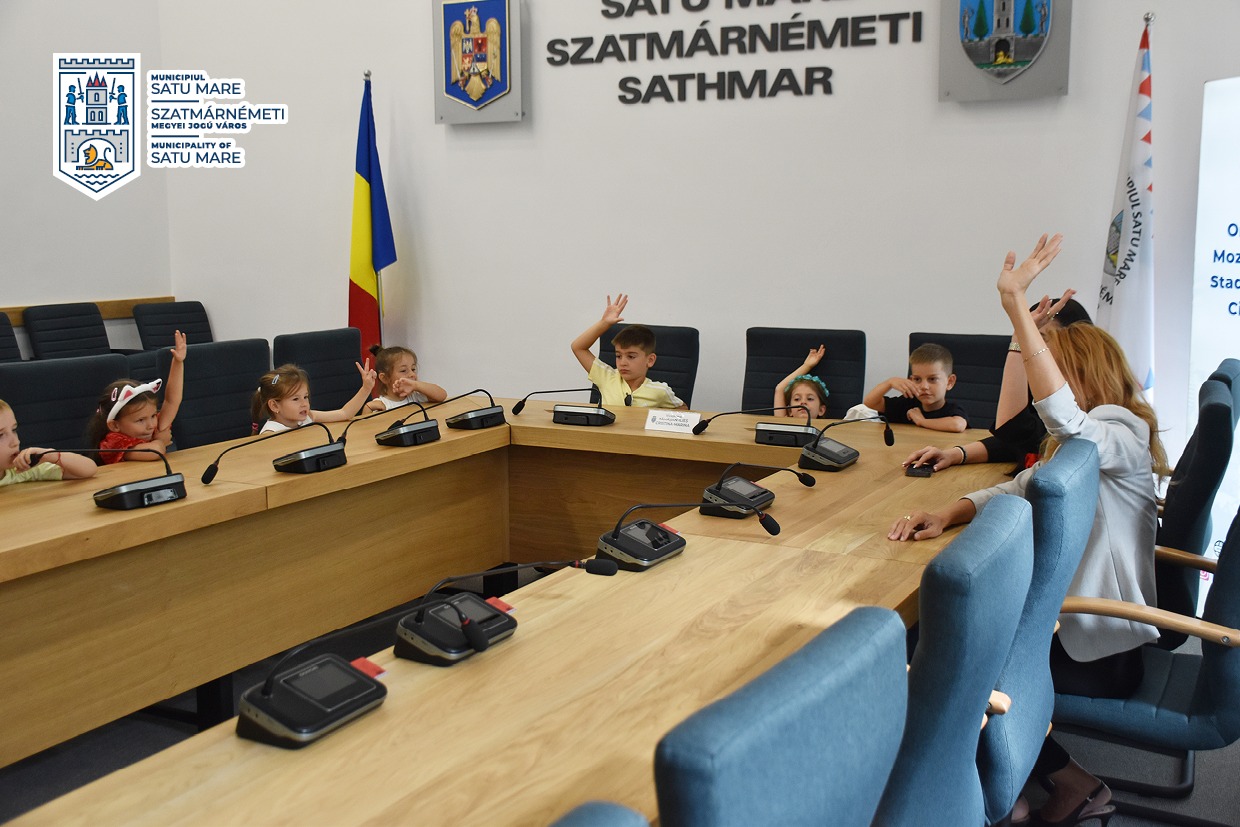 Marți, pragul Primăriei municipiului Satu Mare a fost trecut cu pași mici și inimi mari de către preșcolarii grupei mari de la Grădinița cu Program Prelungit „14 Mai”. Sala de ședințe a Consiliului Local s-a umplut de râsete, curiozitate și energie, transformând pentru o zi spațiul administrației locale într-un loc al copilăriei și al imaginației.