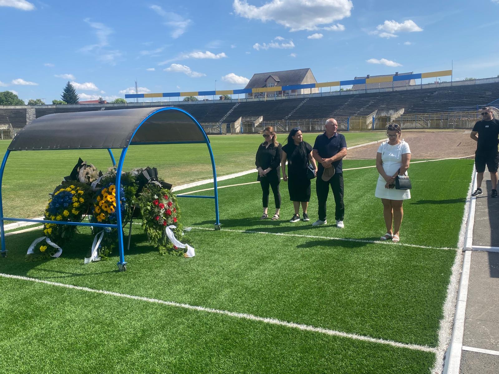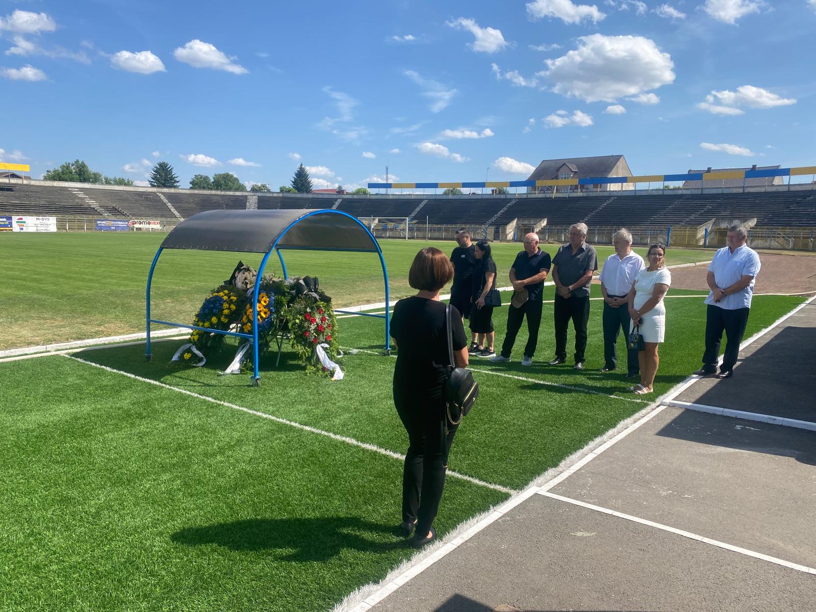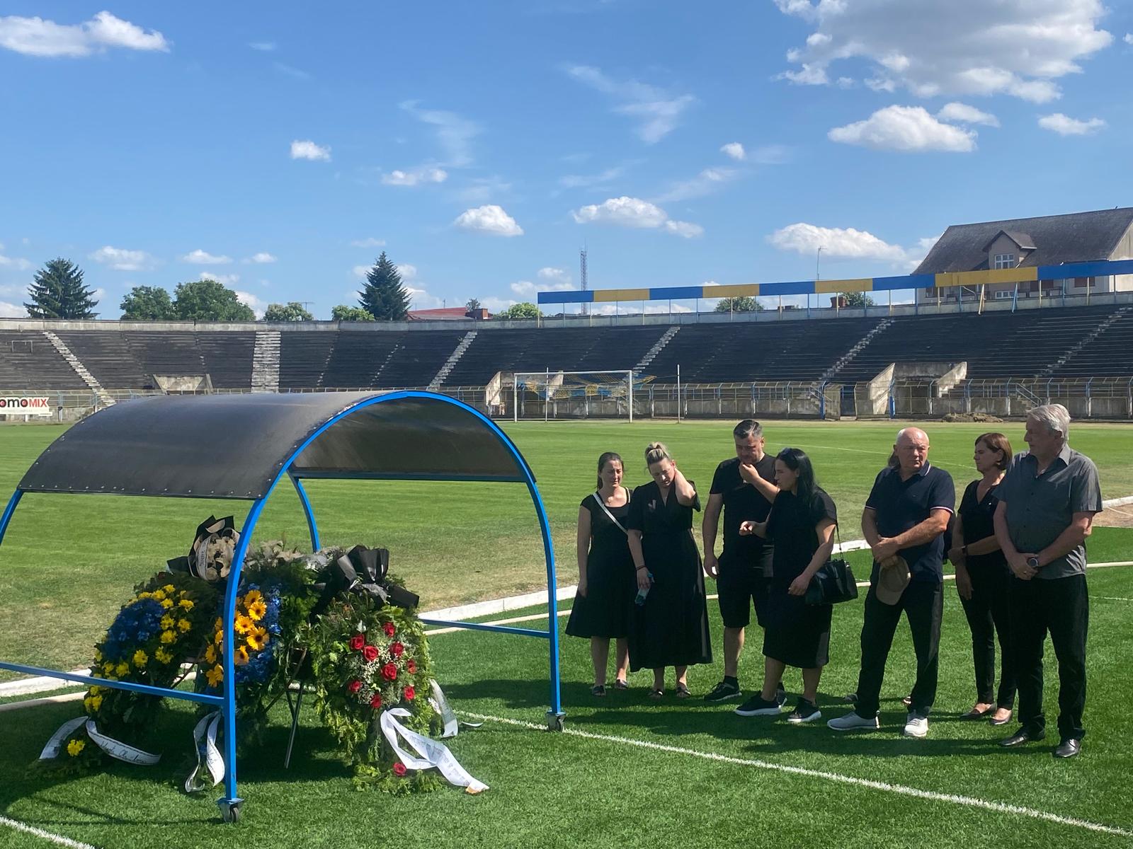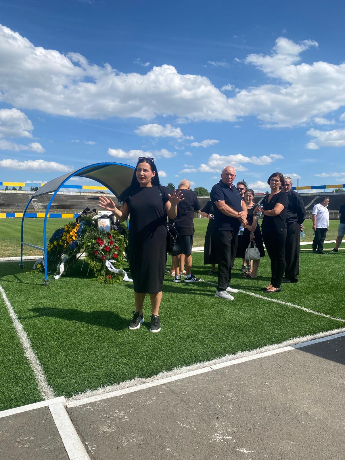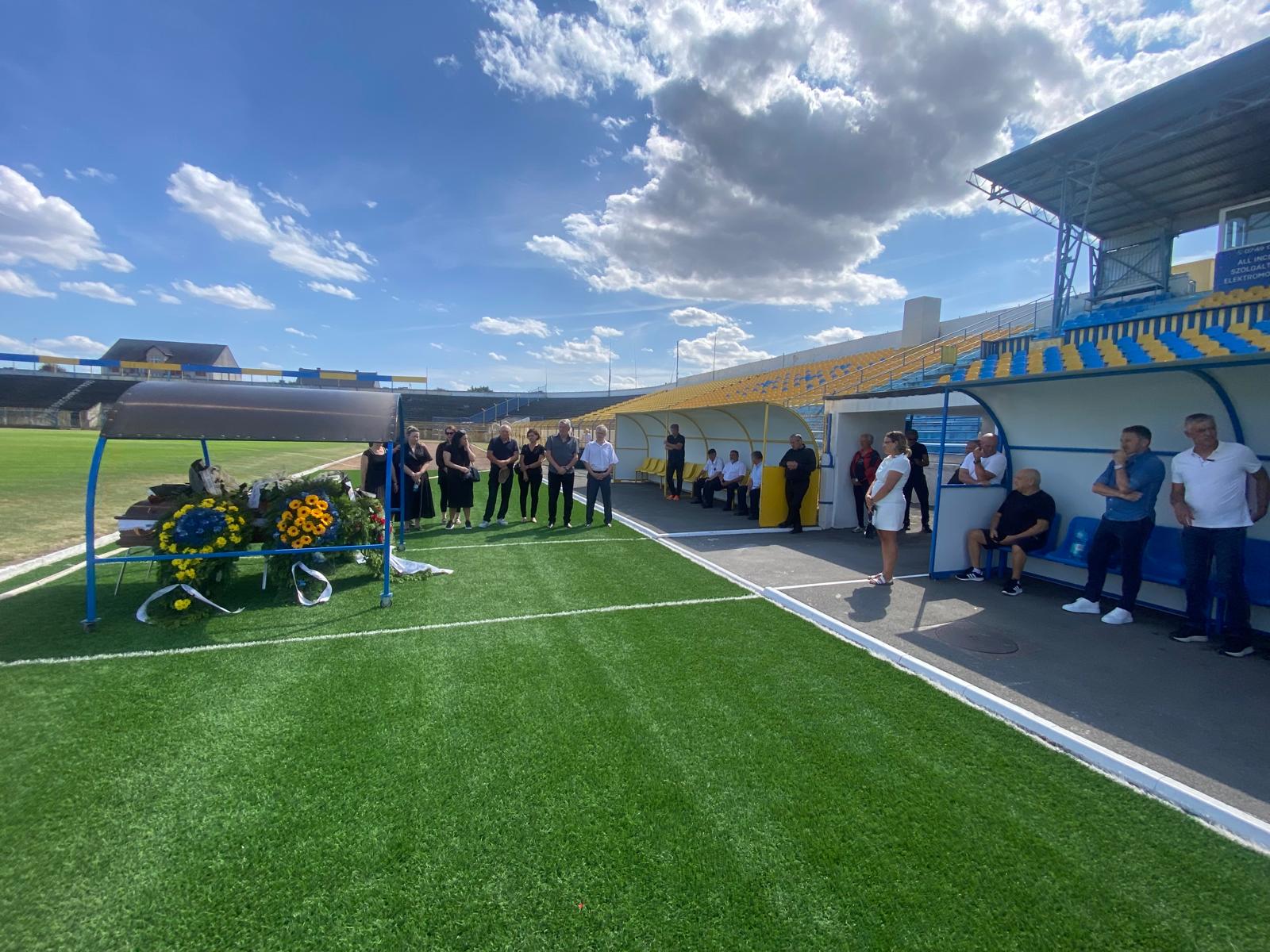 La dorința expresă a familiei, sicriul a ajuns la stadionul Olimpia în jurul orei 16:00 în prezența membrilor familiei lui Andrei Sanyak Balogh, dar și unora dintre foștii colegi din fotbalul sătmărean.