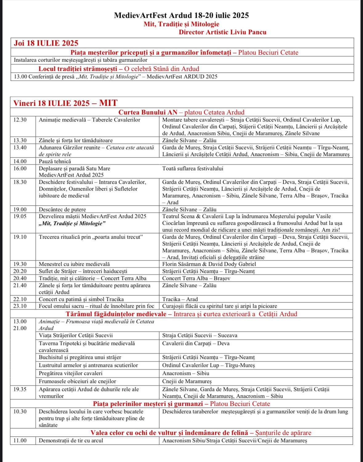 Prima zi a festivalului promite un adevărat regal al tradițiilor, miturilor și atmosferei de epocă, în spiritul unei comunități care celebrează cu mândrie trecutul său glorios.