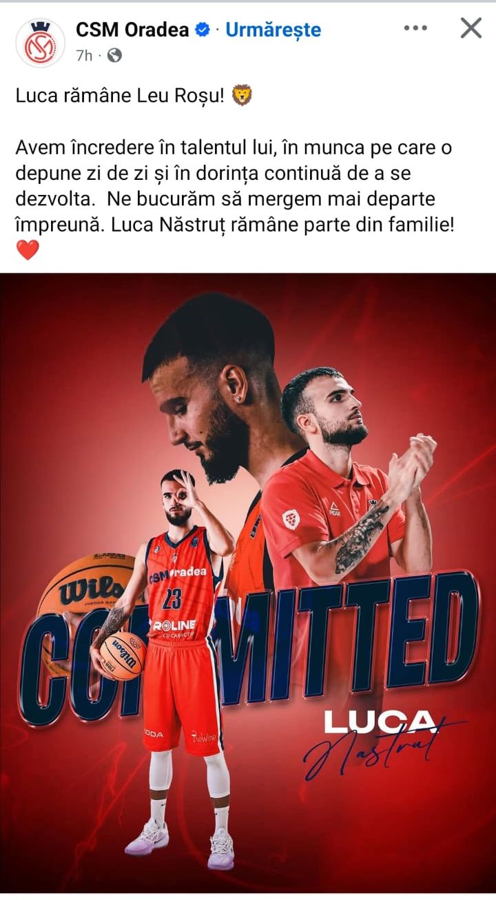 În sezonul precedent, Luca Năstruț a contabilizat 34 de prezențe în campionat cu CSM CSU Oradea, având medii statistice de 2,8 puncte marcate, 0,6 recuperări, 0,4 pase decisive și 2,7 la eficiență, în 9 minute jucate pe meci. Năstruț este component al echipei naționale universitare a României, care va participa la Jocurile Mondiale Universitare 2025. Competiția va avea loc la 15-27 iulie, în Germania.