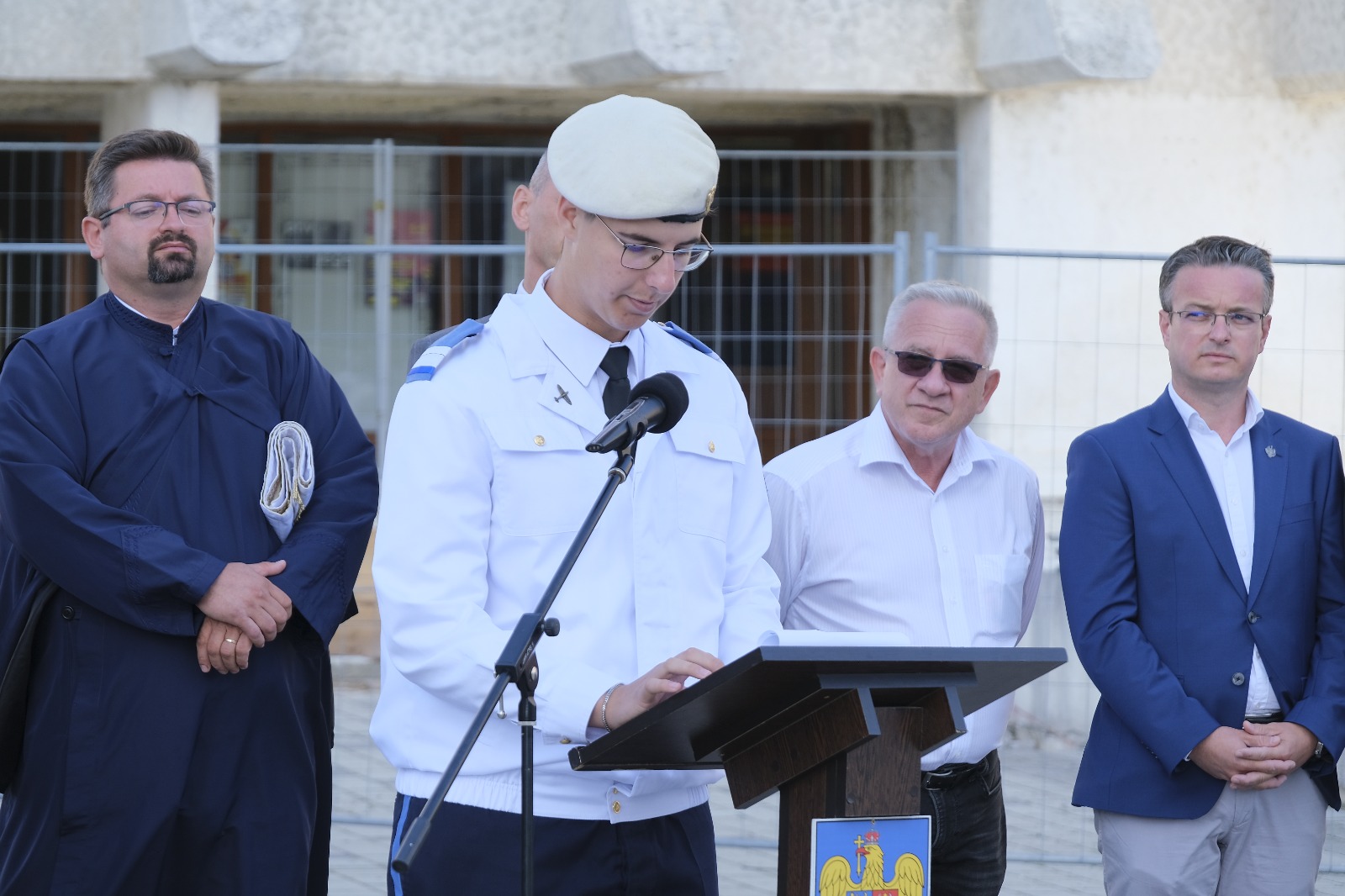 alocuțiunea de deschidere susținută de prefectul județului, Altfatter Tamás, care a transmis mesajul oficial al prim-ministrului Ilie Bolojan;