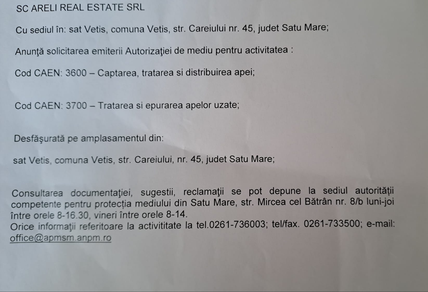 ANUNŢ REAL ESTATE Publicitate • 05.08.2025 00:00 Distribuie: Primește ziarul gratuit pe email! Abonează-te și citești ziarul Gazeta Nord-Vest zilnic, gratuit. Abonează-te Acasa Publicitate ANUNŢ REAL ESTATE Articole Similare Publicitate ANUNȚ MEDIU ROMANTIC AIM SRL acum 1 zi Publicitate Anunț SC Bio Piersicuta SRL – pentru Ocolul Silvic Codrii Satmarului acum 3 zile Publicitate Anunt mediu Distribuție Energie Electrică Romania – Sucursala Satu Mare acum 4 zile Publicitate ANUNȚ POMIAN VASILE acum 4 zile Publicitate Anunț Mediu BOVAGRO Pișcari acum 1 saptamana Publicitate Condoleanțe Szabó Francisc acum 2 saptamani Ultimele Articole Locale Complexul de Educație Ecologică „Casa verde” din Grădina Romei, a fost gazda festivității de lansare a unui nou proiect de mediu cu titlul: GRĂDINIȚE SALVATOARE DE RÂURI acum 4 ore Locale Viceprimarul Cristina Tămășan Ilieș felicită Poliția Locală. Acțiuni intensificate împotriva cerșetoriei în Satu Mare acum 5 ore Locale Peste 10.000 de cărți electronice de identitate emise în Satu Mare. Viceprimarul Raul Băbțan: „Digitalizarea devine realitate” acum 5 ore Locale Deputatul Mircea Govor: Bugetul României a fost adoptat. Investiții importante pentru județul Satu Mare acum 5 ore Locale Cea mai mare creșă din Satu Mare, aproape de finalizare: 110 locuri pentru copii acum 5 ore Locale Deratizare în Satu Mare, în perioada 23–27 martie 2026. Avertisment pentru populație acum 5 ore Cele mai citite 1 NORD VEST TV. Slăbitul cu injecții, între speranță și risc. Avertismentul unui medic gastroenterolog din Satu Mare 2 Complexul de Educație Ecologică „Casa verde” din Grădina Romei, a fost gazda festivității de lansare a unui nou proiect de mediu cu titlul: GRĂDINIȚE SALVATOARE DE RÂURI 3 Cea mai mare creșă din Satu Mare, aproape de finalizare: 110 locuri pentru copii 4 APASERV. Grupa Albinuțelor de la Grădinița 14 Mai a descoperit drumul apei 5 Viceprimarul Cristina Tămășan Ilieș felicită Poliția Locală. Acțiuni intensificate împotriva cerșetoriei în Satu Mare Din aceeasi categorie ANUNȚ MEDIU ROMANTIC AIM SRL acum 1 zi Anunț SC Bio Piersicuta SRL – pentru Ocolul Silvic Codrii Satmarului acum 3 zile Anunt mediu Distribuție Energie Electrică Romania – Sucursala Satu Mare acum 4 zile ANUNȚ POMIAN VASILE acum 4 zile Anunț Mediu BOVAGRO Pișcari acum 1 saptamana Ultimele stiri Complexul de Educație Ecologică „Casa verde” din Grădina Romei, a fost gazda festivității de lansare a unui nou proiect de mediu cu titlul: GRĂDINIȚE SALVATOARE DE RÂURI acum 4 ore Viceprimarul Cristina Tămășan Ilieș felicită Poliția Locală. Acțiuni intensificate împotriva cerșetoriei în Satu Mare acum 5 ore Peste 10.000 de cărți electronice de identitate emise în Satu Mare. Viceprimarul Raul Băbțan: „Digitalizarea devine realitate” acum 5 ore Deputatul Mircea Govor: Bugetul României a fost adoptat. Investiții importante pentru județul Satu Mare acum 5 ore Cea mai mare creșă din Satu Mare, aproape de finalizare: 110 locuri pentru copii acum 5 ore